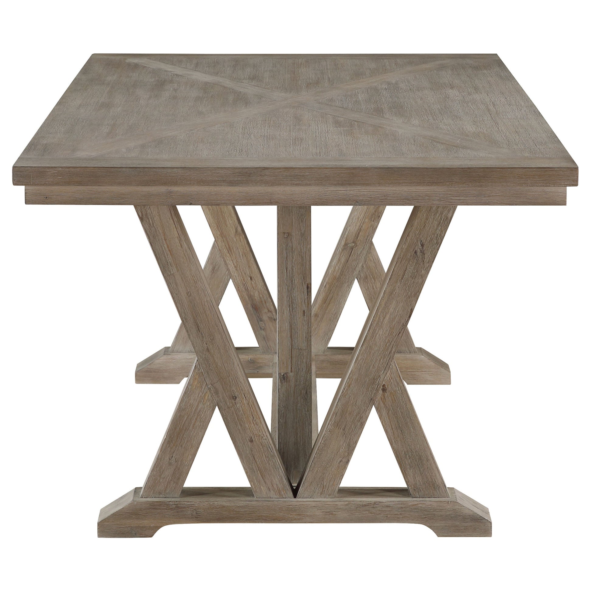 Con un carácter elegante, esta moderna mesa de comedor estilo granja es una pieza central impactante. Perfecta para la familia o para recibir amigos, su silueta rectangular se completa con un diseño de base de caballete que le aporta un toque artístico. La mesa está bellamente elaborada, utilizando madera de acacia para una excelente durabilidad y chapa de acacia para una textura uniforme de la veta. Su acabado gris costero es relajante y versátil, creando el ambiente perfecto en una cocina o comedor relajado. La forma rectangular de la mesa es ideal para sentarse y luce genial en cualquier espacio informal.