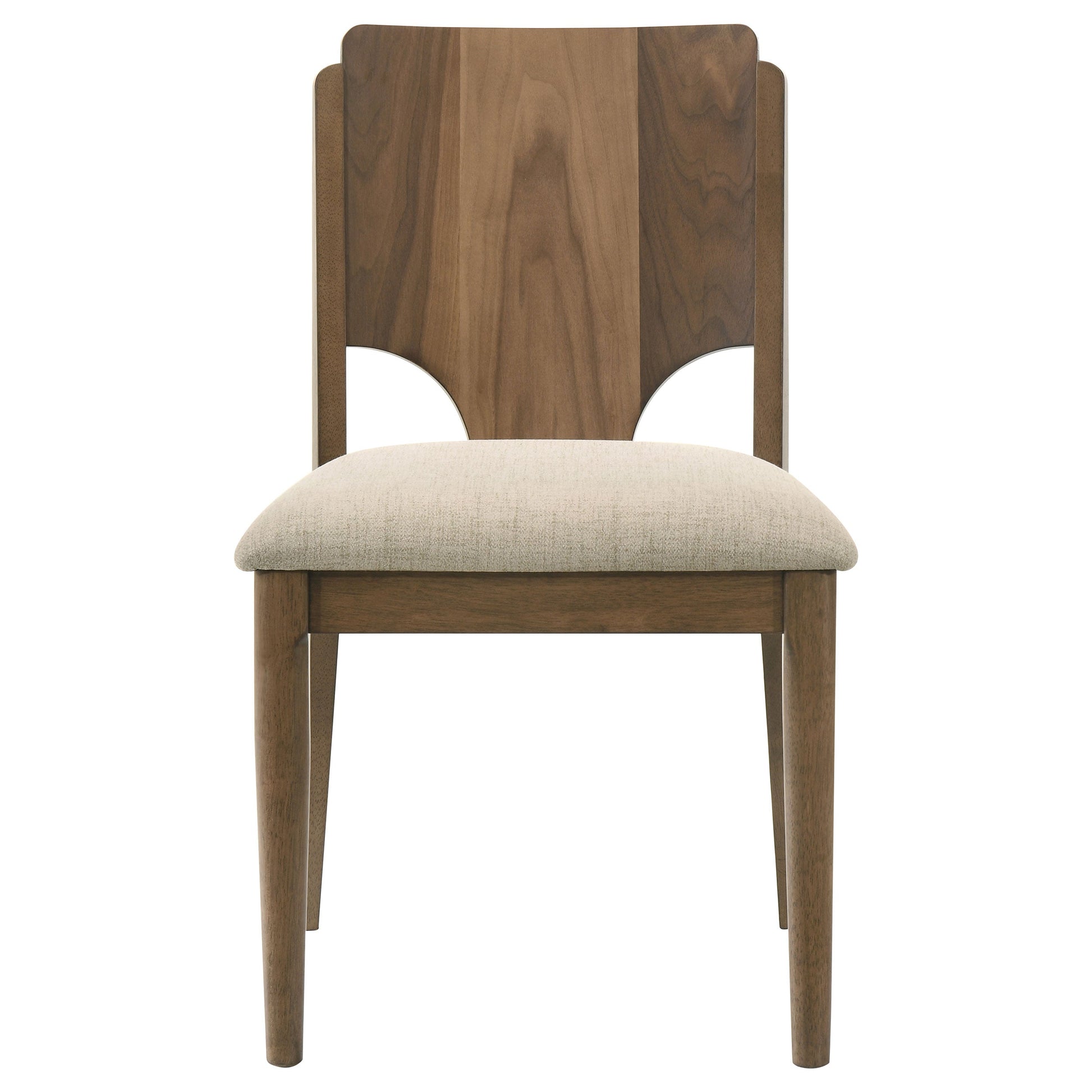 Un acabado de nogal resalta los detalles de la veta de la madera de cada silla y agrega riqueza.
