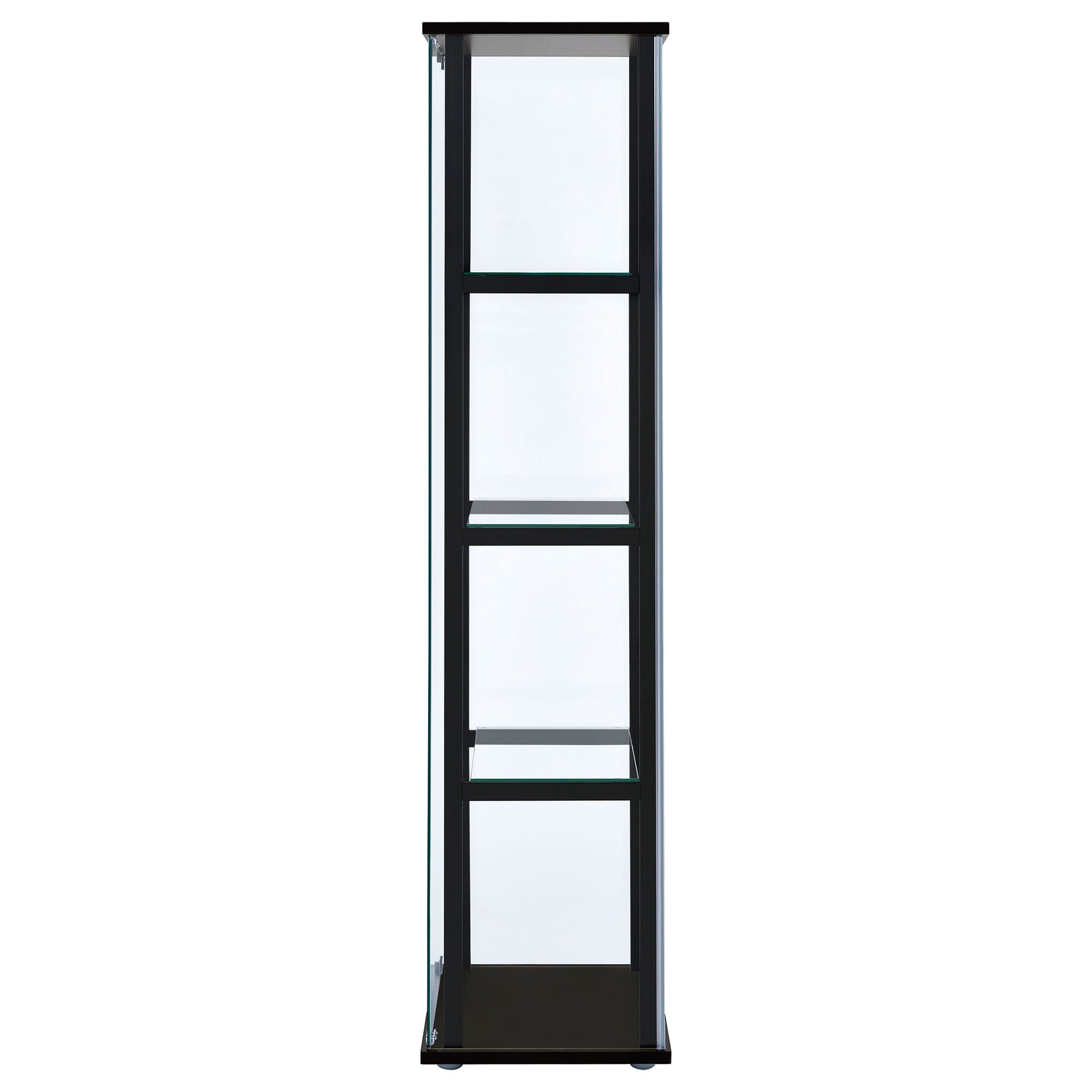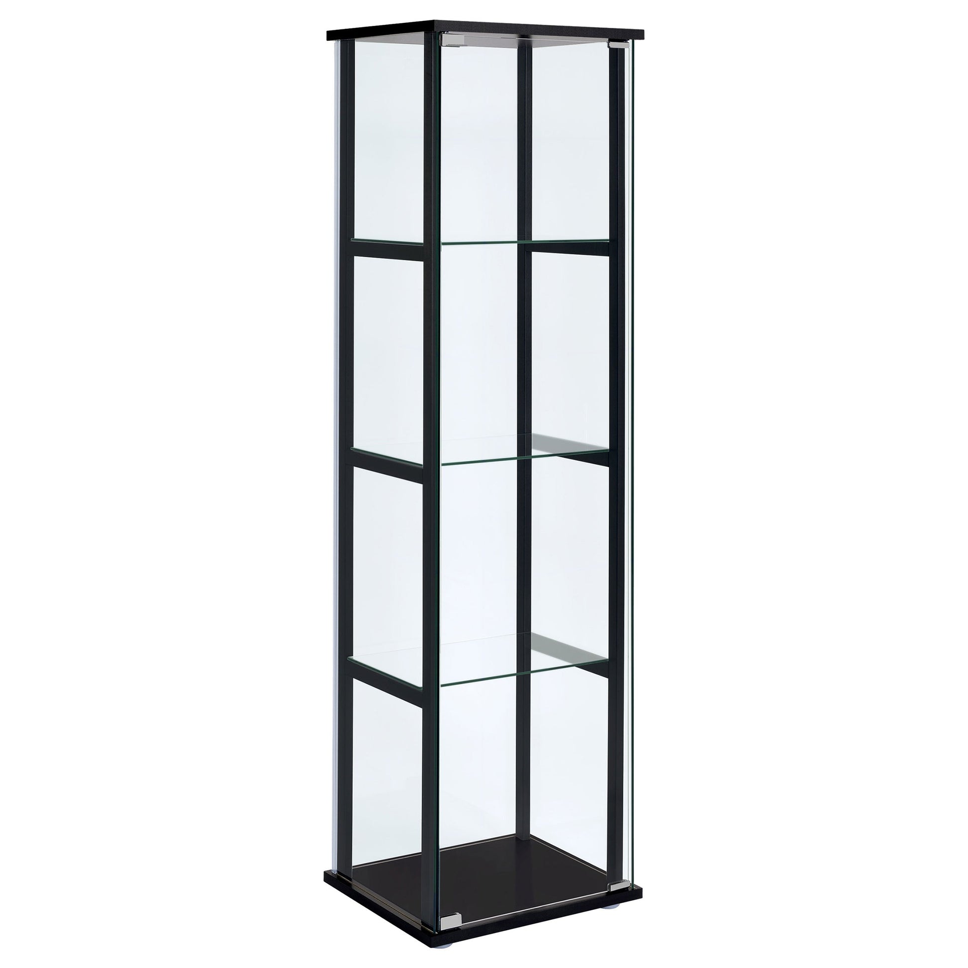 Ideal para espacios reducidos, esta vitrina ofrece un estilo fresco e inspirador. Su diseño lineal y sencillo combina una esbelta estructura negra con estantes de vidrio templado. Sus puertas de vidrio con apertura a presión facilitan el acceso a su interior. Esta vitrina es el lugar ideal para exhibir objetos de decoración y obras de arte preciados. Combínala con un elegante conjunto de asientos o colócala como una atractiva pieza independiente.