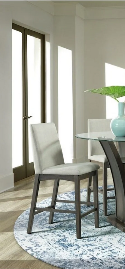 El juego de sillas altas Dapper le dará a tu comedor la renovación que tanto ansiabas. Incluye dos sillas altas tapizadas en tela color crema. La base con acabado en nogal oscuro combina a la perfección con la tapicería color crema, creando un estilo transicional que nunca pasa de moda. Te sentirás muy cómodo durante esas largas cenas gracias al asiento y respaldo con cojines de espuma. ¡Añade este juego a tu hogar hoy mismo y disfruta de un estilo que te encantará encontrar día tras día!