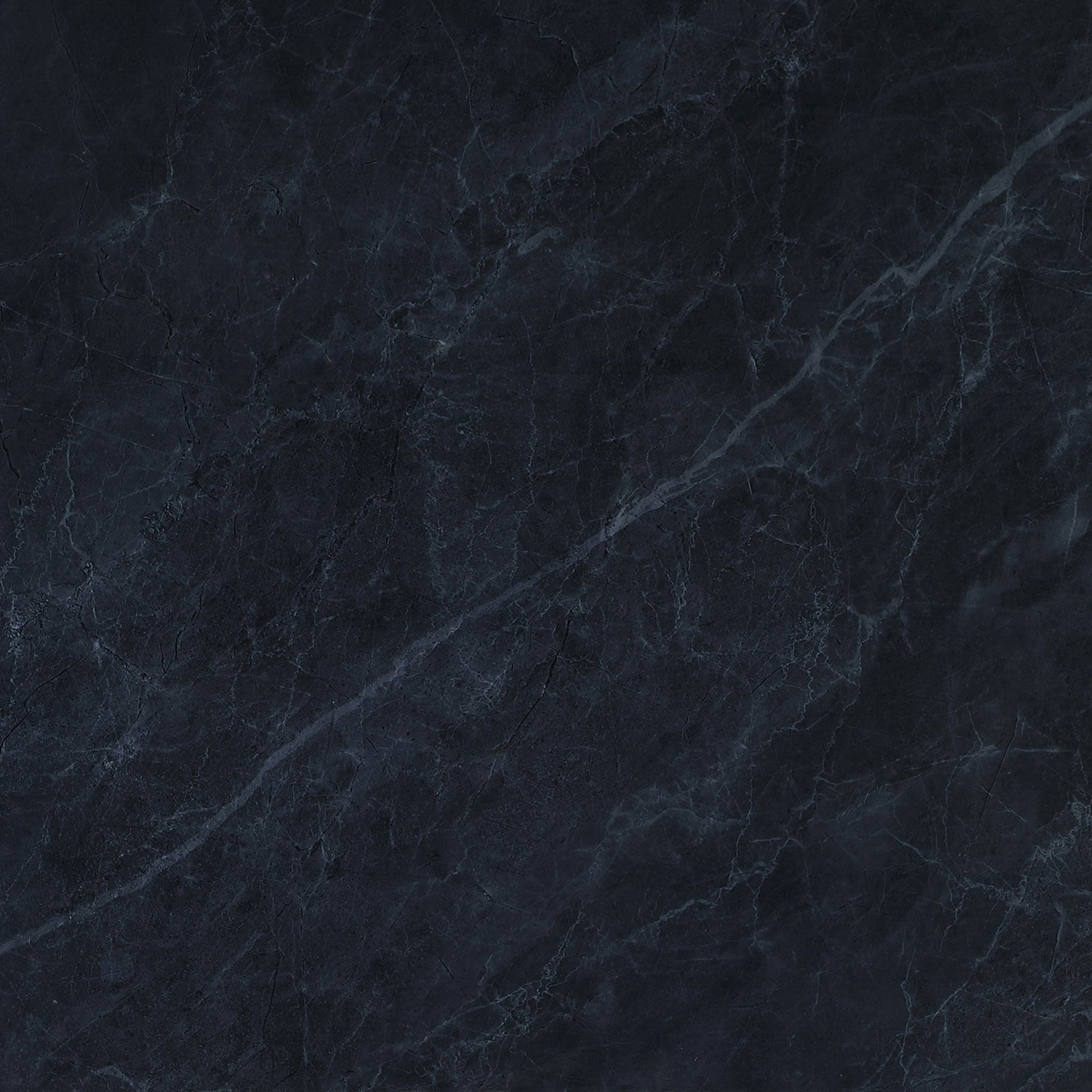 Una mesa de mármol gris oscuro es delgada y elegante, con una construcción de piedra sinterizada.