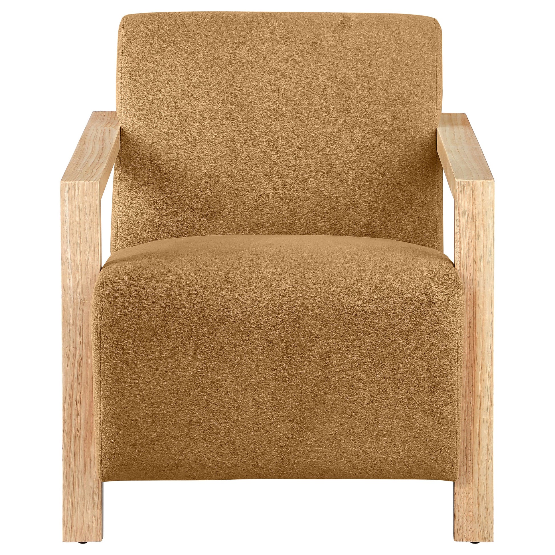 Dale un toque acogedor a un conjunto de asientos contemporáneo con este moderno sillón decorativo. Diseñado para destacar, presenta un tapizado suave y dimensional sobre lujosos cojines de espuma para crear una presentación elegante y sofisticada. El sillón cuenta con un respaldo liso y un asiento amplio con borde en cascada, lo que le da una presencia acogedora y una comodidad impresionante. Incluye un par de reposabrazos de madera, cada uno con un perfil angular y líneas rectas y definidas. Añade este encantador sillón a un conjunto de asientos existente o elige un par para crear un complemento acogedor.