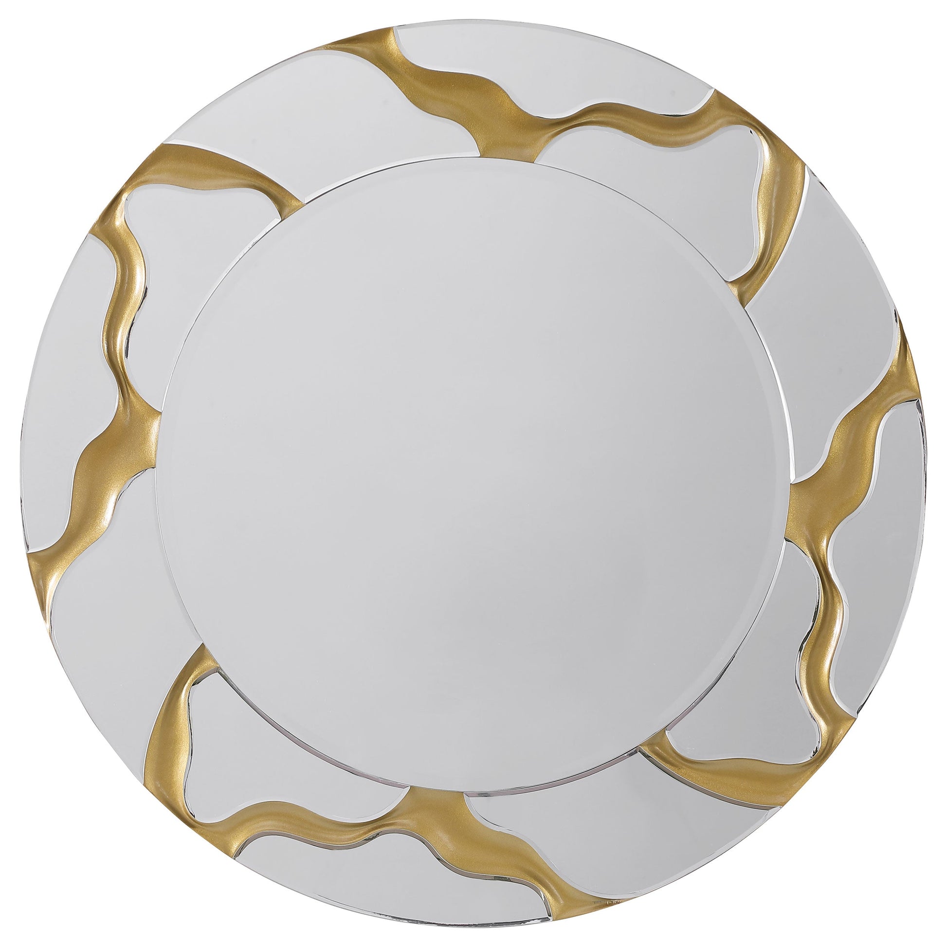 Infunda sofisticación en la decoración con un moderno espejo de pared. Luce un perfil redondo, con un espejo central y un marco de espejo. Ambos están revestidos de MDF para mayor durabilidad. El marco de espejo está realzado con ríos de oro, creando un efecto craquelado cálido y natural en una elegante sala de estar o dormitorio. Elige un lugar destacado sobre la repisa de la chimenea o una consola para lucir este impresionante diseño.
