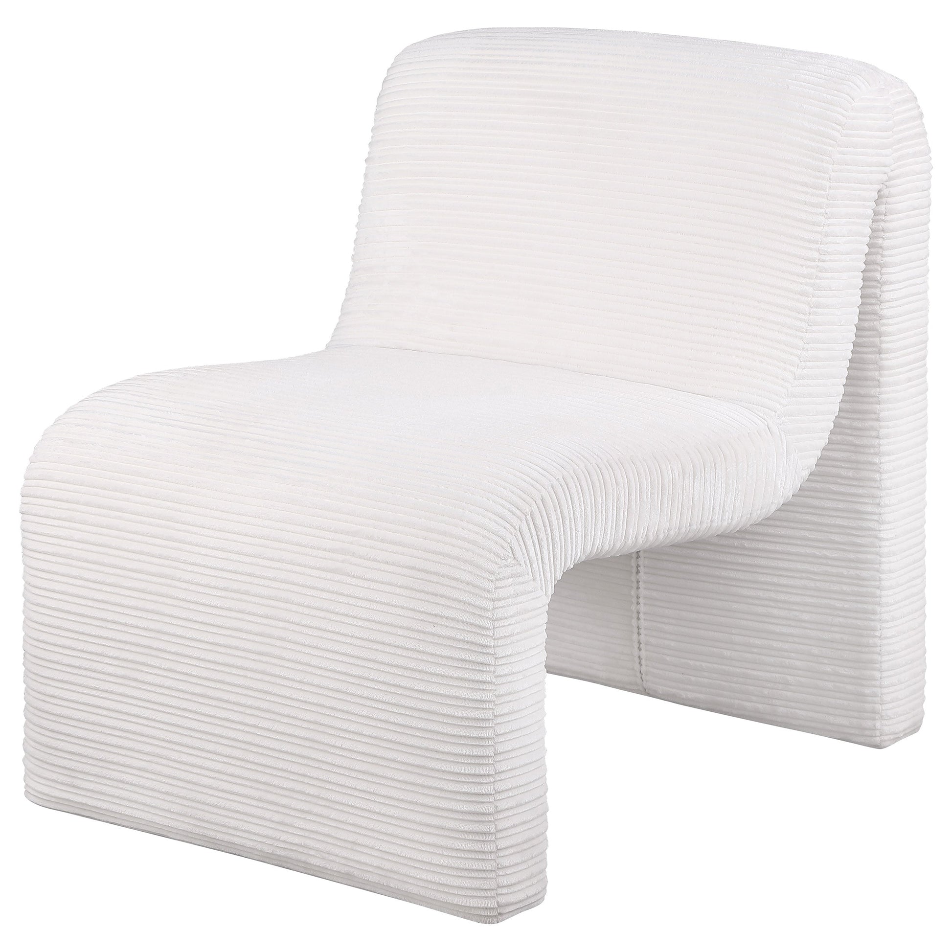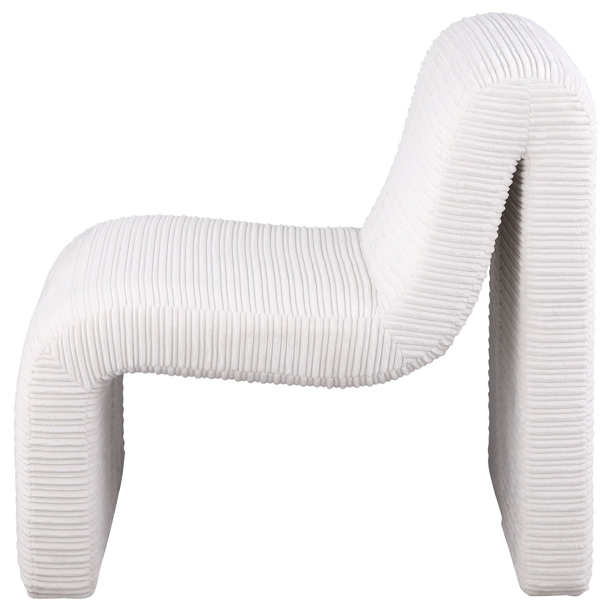 Añade un toque escultural a tu atractivo conjunto de asientos con esta moderna silla decorativa. Su perfil sin brazos y su curvatura sinuosa aportan una elegancia seductora a cualquier ambiente. Su tapizado neutro tiene un aspecto acanalado que crea una textura y profundidad impecables. La silla está fabricada con metal y madera contrachapada para mayor durabilidad, y recubierta de espuma para una excelente amortiguación que promueve la comodidad. Elige un par para una sala de estar o estudio refinado.