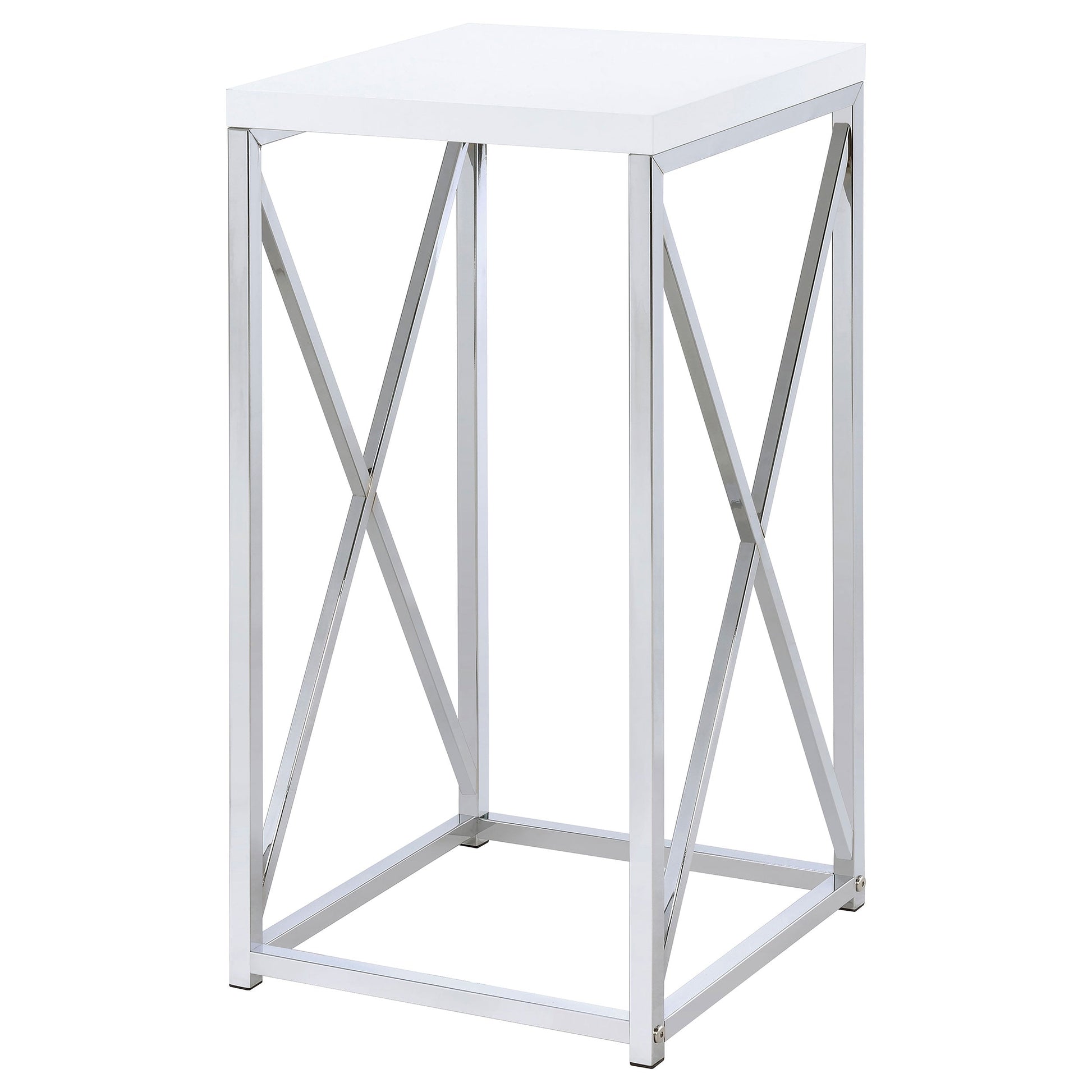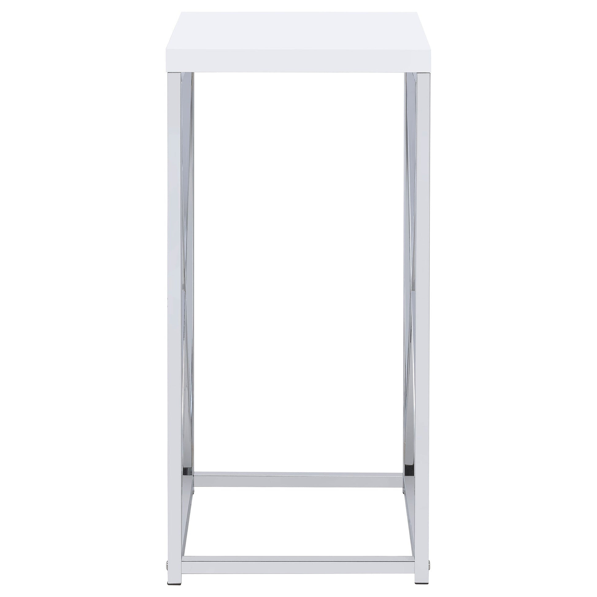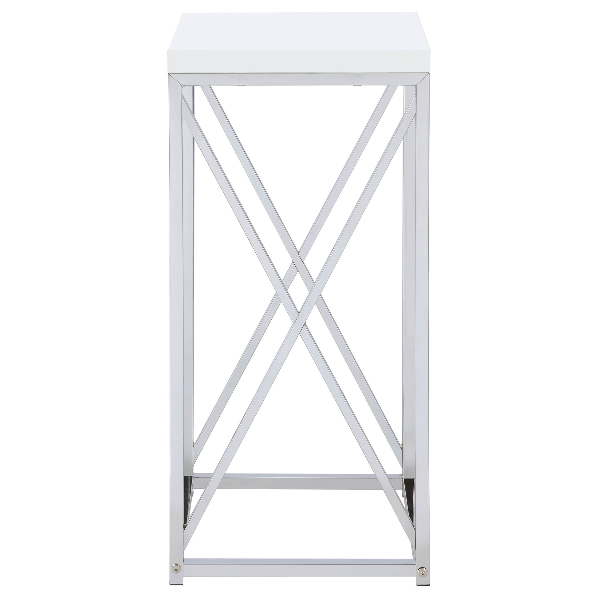 Esta moderna mesa auxiliar rebosa lujo y ofrece una sofisticada actualización a una silueta sencilla. Decorada con detalles en forma de X, la base presenta líneas elegantes con un acabado metálico brillante. Decore cualquier sala de estar o comedor con el acabado blanco nítido y brillante de su tablero cuadrado. Cree una sensación de amplitud con sus patas ligeras y tonos brillantes, ideales para añadir profundidad. Exhiba su jarrón favorito con estilo sobre detalles en trama cruzada.