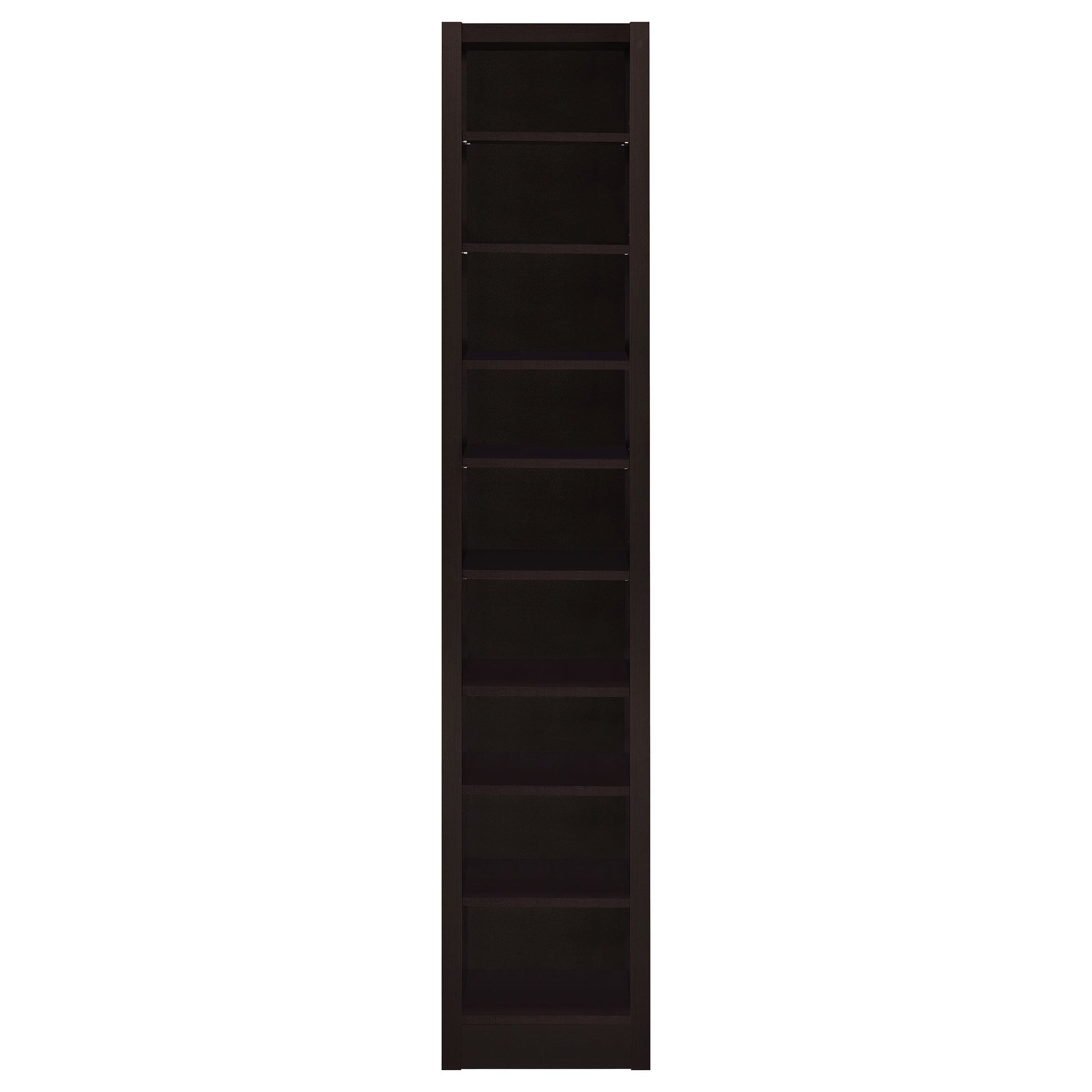 Realza un dormitorio o sala de estar con un diseño audaz pero sencillo. Esta librería cerrada de nueve niveles combina a la perfección robustez y estilo. Está hecha de MDF, tableros de partículas y chapa de madera para una mayor durabilidad. Alta y estrecha, alberga una variedad de libros y pertenencias sin ocupar demasiado espacio. Con un acabado en un rico color capuchino intenso, aporta un glamour natural a cualquier habitación.
