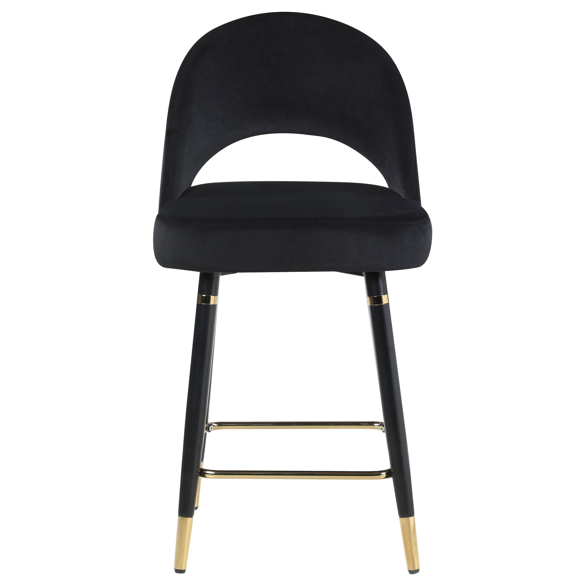 Perfecto para áreas de entretenimiento contemporáneas, este elegante, moderno y glamuroso juego de mesa de altura de mostrador puede alojar cómodamente a cuatro personas. Su tablero redondo de cristal transparente y su base de pedestal redonda, inspirada en una columna, se integran con elegancia en su espaciosa habitación o rincón de desayuno. La base de la mesa de pedestal luce una brillante incrustación de diamantes de imitación y azulejos de espejo que relucen de forma espectacular. Cuatro sillas de altura de mostrador cuentan con respaldos redondeados y abiertos, tapizados en terciopelo suave y liso para mayor comodidad y soporte. Cada asiento reposa sobre patas delgadas, con detalles metálicos dorados y un robusto reposapiés que le aporta un contraste espectacular y un toque de glamour.