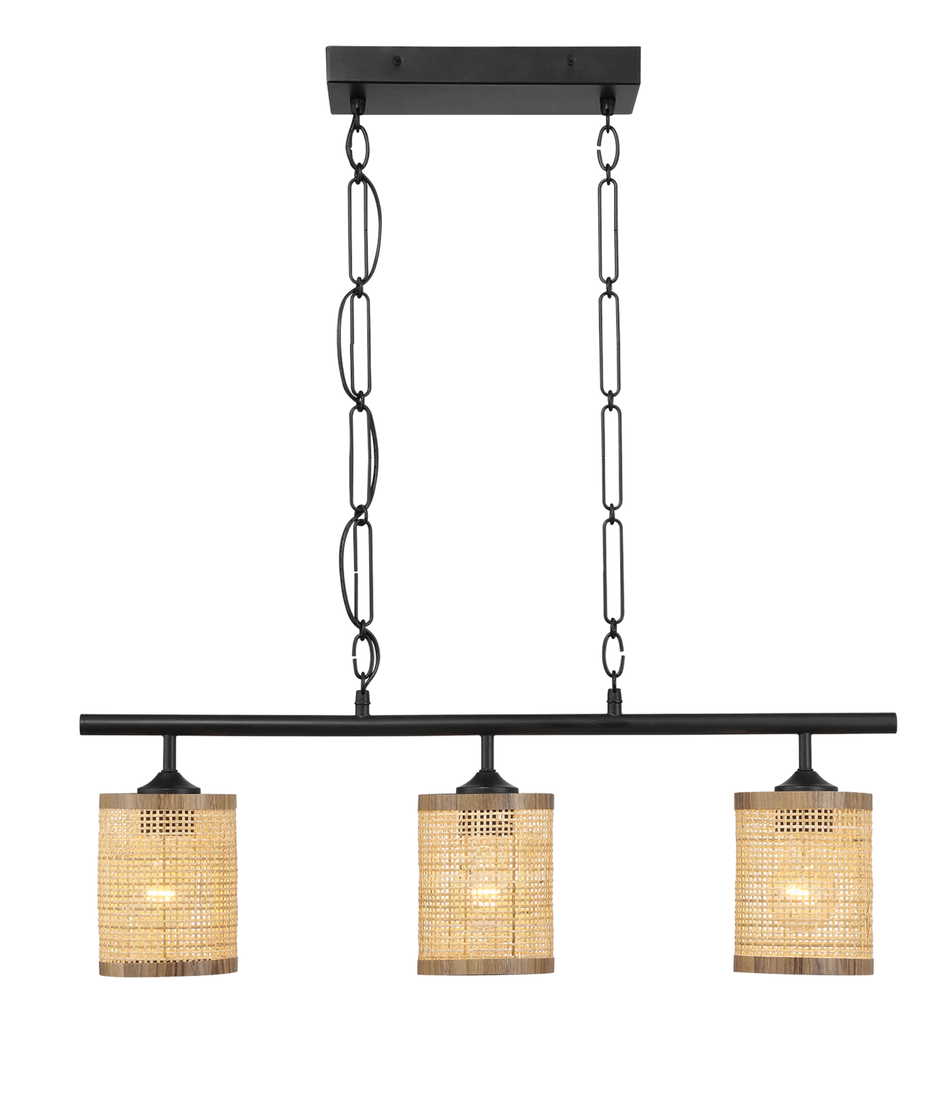 Ilumina tu espacio con la lámpara de isla Elysian de tres luces. Su pantalla de ratán natural le da un toque rústico y su resistente cadena permite ajustar la altura. El complemento perfecto para cualquier espacio que necesite una luz cálida y acogedora. ¡Aporta una acogedora elegancia a tu hogar hoy mismo! Realza tu espacio con la cálida y acogedora luz de la lámpara de isla Elysian de tres luces. Su pantalla de ratán natural le da un toque rústico y su resistente cadena permite ajustar la altura. ¡Crea un ambiente acogedor y elegante en tu hogar con esta impresionante pieza!