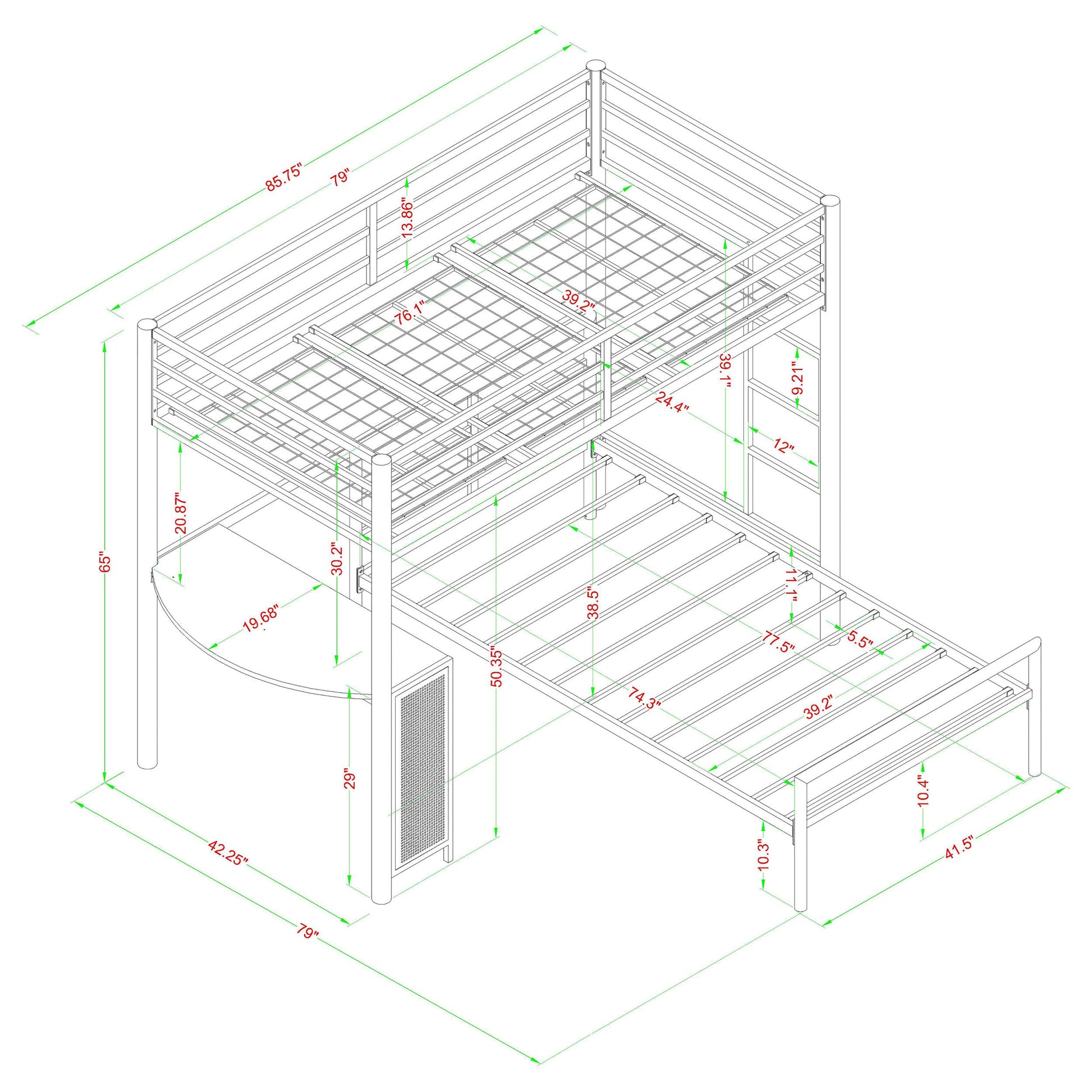 Esta cama alta compacta para estación de trabajo con acabado en bronce con recubrimiento en polvo es ideal para espacios pequeños, ya que funciona como cama y estación de trabajo, todo en una sola pieza funcional.