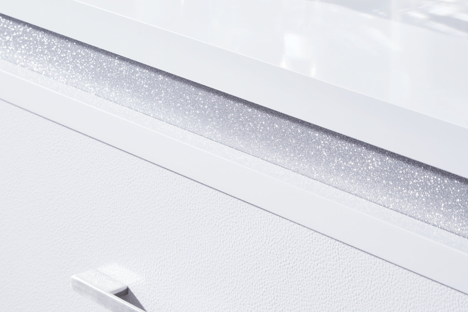 This nightstand is a showstopper, bringing a touch of modern glamour to your sanctuary. A sleek white finish and inset glitter accents create a sophisticated feel, while spacious drawers provide practical storage. ItÕs a simply stunning way to achieve the bedroom of your dreams.