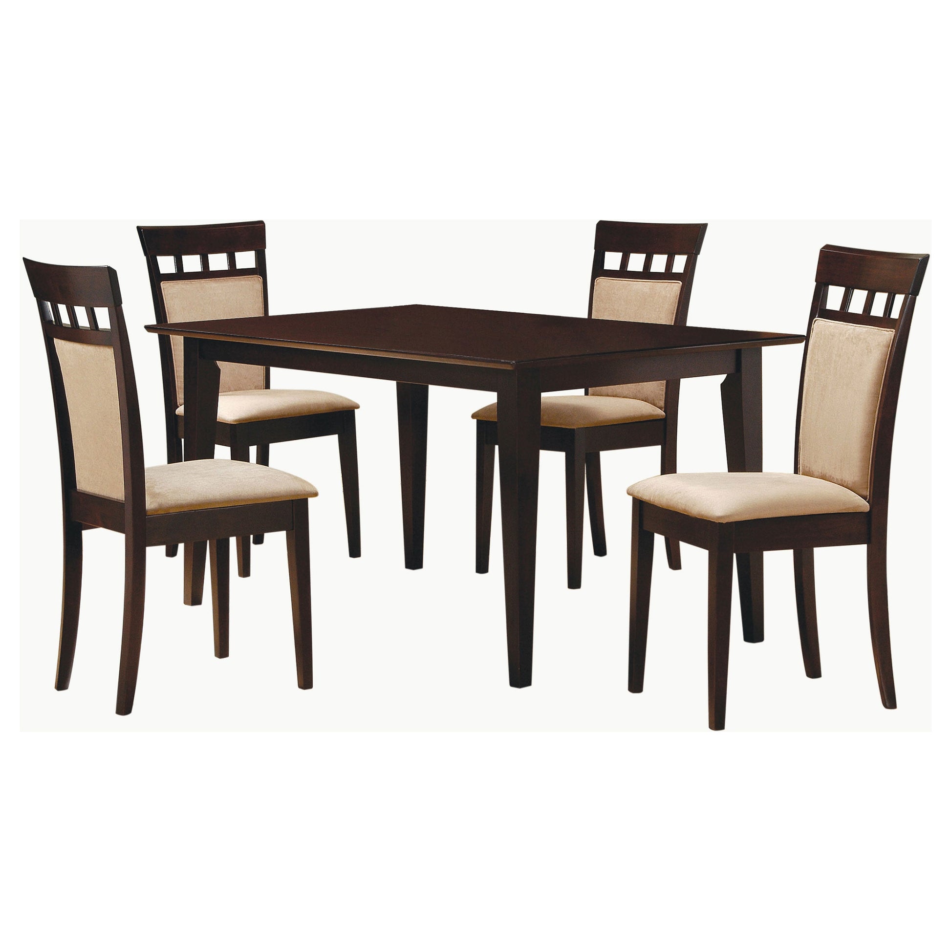 Añada una elegancia atemporal a su comedor con este juego de cinco piezas que incluye una mesa rectangular de 150 cm y cuatro sillas con respaldo enrejado. La mesa está elaborada con madera noble resistente, madera de ingeniería y chapa de okume en un elegante acabado capuchino. Las sillas con respaldo enrejado cuentan con asientos acolchados tapizados en suave microfibra color canela, que combinan comodidad y atractivo visual. Este juego combina a la perfección el diseño clásico con la funcionalidad moderna, lo que lo hace perfecto para comidas íntimas o reuniones informales.