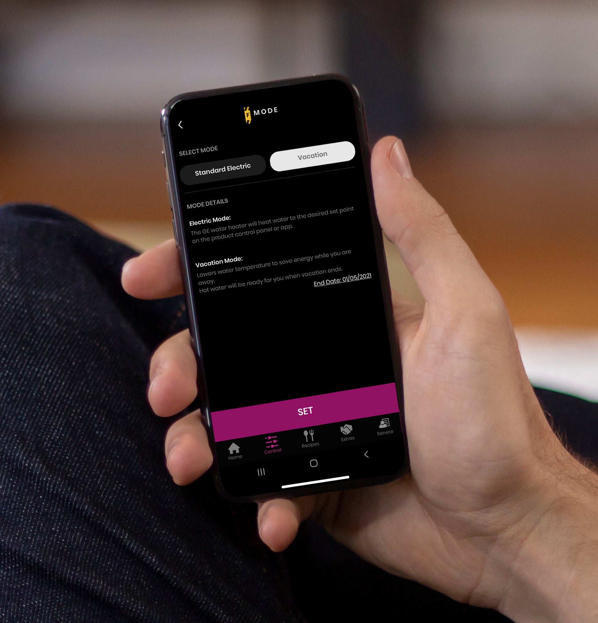 Easily adjust temperatures, set vacation mode schedules and receive notifications with Built-in WiFi powered by SmartHQ