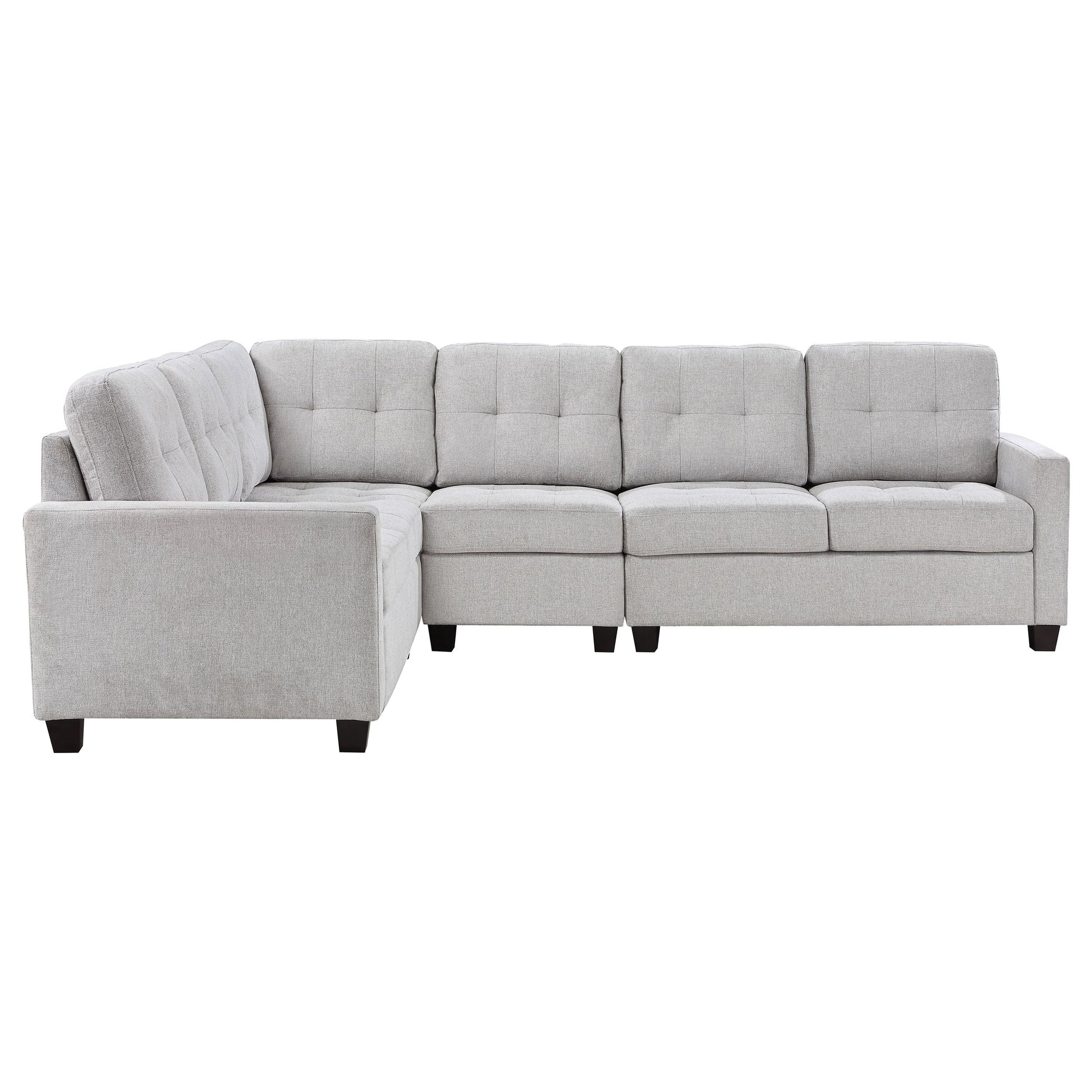 Disfrute de un espacio elegante para toda la familia con un moderno sofá seccional en forma de L. En beige, para una presencia cálida y neutra, el sofá luce cojines capitoné y almohadones decorativos que aportan profundidad y dimensión a una acogedora sala de estar. Los cojines del respaldo son reversibles para mayor versatilidad, mientras que los cojines del asiento están fijados para que se mantengan en su lugar durante el descanso o el entretenimiento. Los brazos articulados crean una silueta estructurada y sencilla, perfecta para una amplia variedad de espacios y decoración. Las patas en forma de bloque se estrechan para añadir el toque final perfecto.