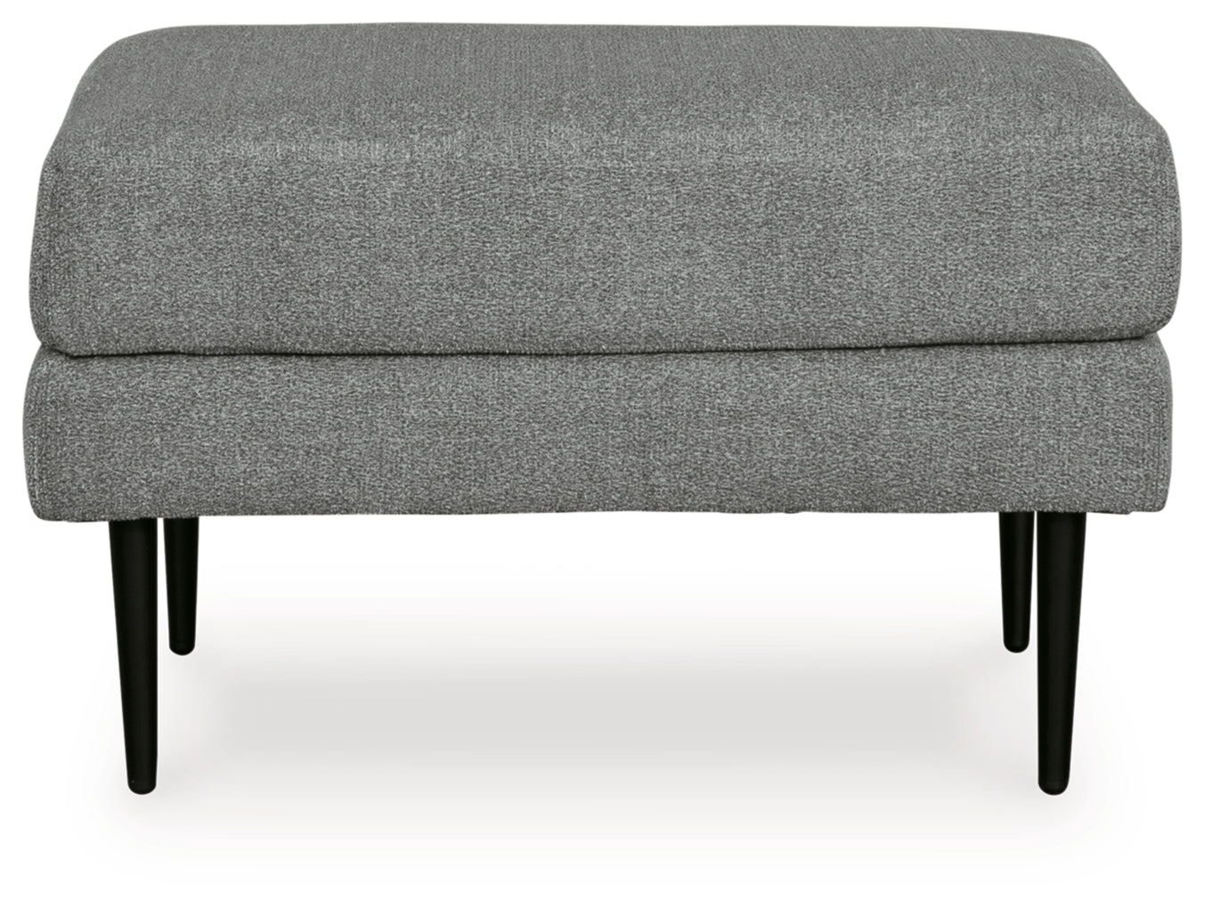Simple comfort meets modern function in this ottoman. An apt addition to apartments and other small spaces, this slim-profiled companion piece welcomes you with its cozy character. A subtle chevron pattern refreshes the classic neutral hue, elevating the look while still suiting a variety of styles. Black accent legs add a dash of contemporary flair.