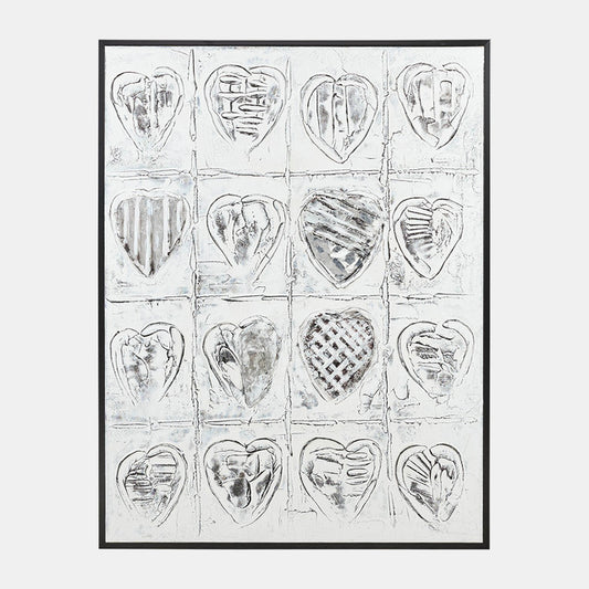 Infunda amor y encanto contemporáneo en tu espacio con el lienzo pintado a mano de Sagebrook Home con corazones. Esta impresionante obra de arte presenta una elegante paleta de grises y motivos de corazones que aportan calidez a la decoración de tu hogar. Ya sea en tu dormitorio, sala de estar o cualquier espacio que necesite un toque romántico, esta obra de arte moderna sin duda causará sensación. El lienzo pintado a mano presenta una encantadora variedad de corazones grises, creando un patrón visualmente atractivo que se roba todas las miradas. Elaborada con lona de poliéster de primera calidad, gel y un marco resistente, esta obra está diseñada para durar, garantizando durabilidad y longevidad.