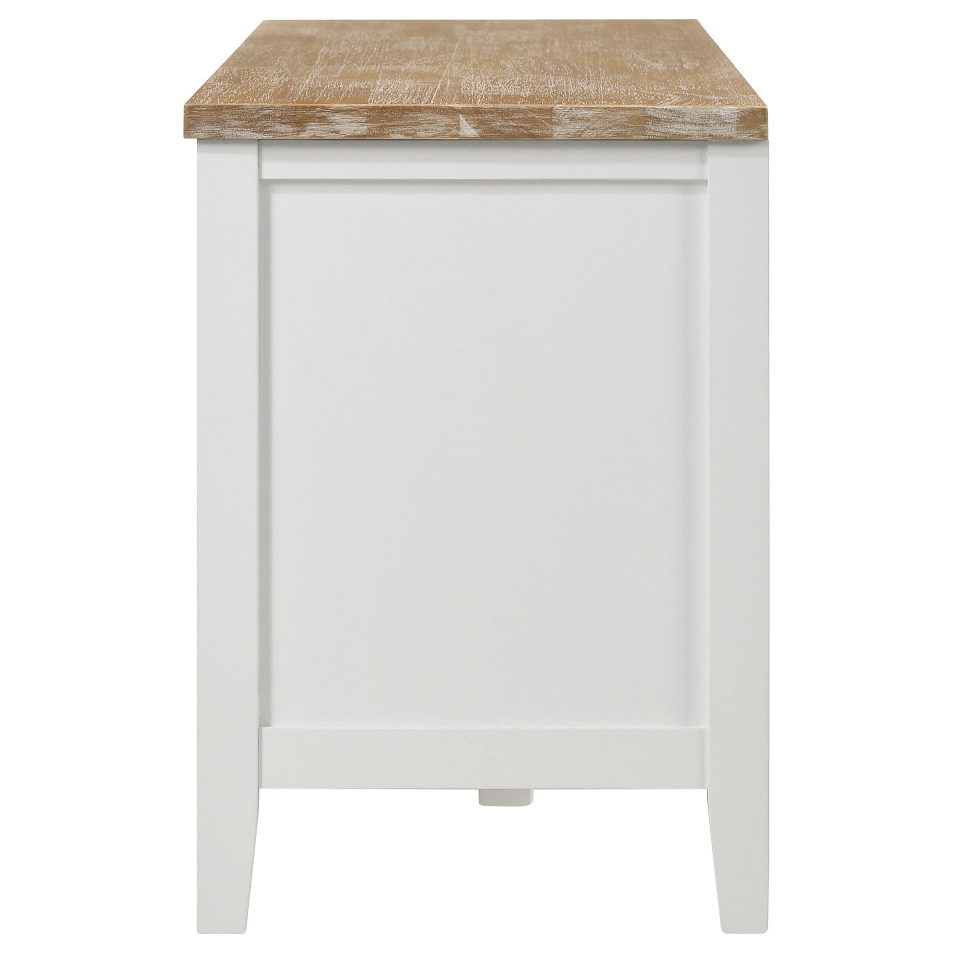 La versatilidad es una ventaja indiscutible en el diseño de este encantador mueble de TV de madera de transición. Espaciosa y con amplio espacio de almacenamiento, esta consola crea un aire fresco con influencias rústicas, costeras y de granja. Su tablero rectangular de madera de fresno con acabado marrón contrasta de maravilla con la estructura blanca. Coloque los componentes en un espacio central abierto y en estantes ajustables tras dos puertas de cristal, y guarde los dispositivos multimedia y accesorios en un amplio cajón extraíble. Esta consola todo en uno organiza sus dispositivos de entretenimiento y accesorios para que disfrute de una experiencia multimedia fluida y de fácil acceso.