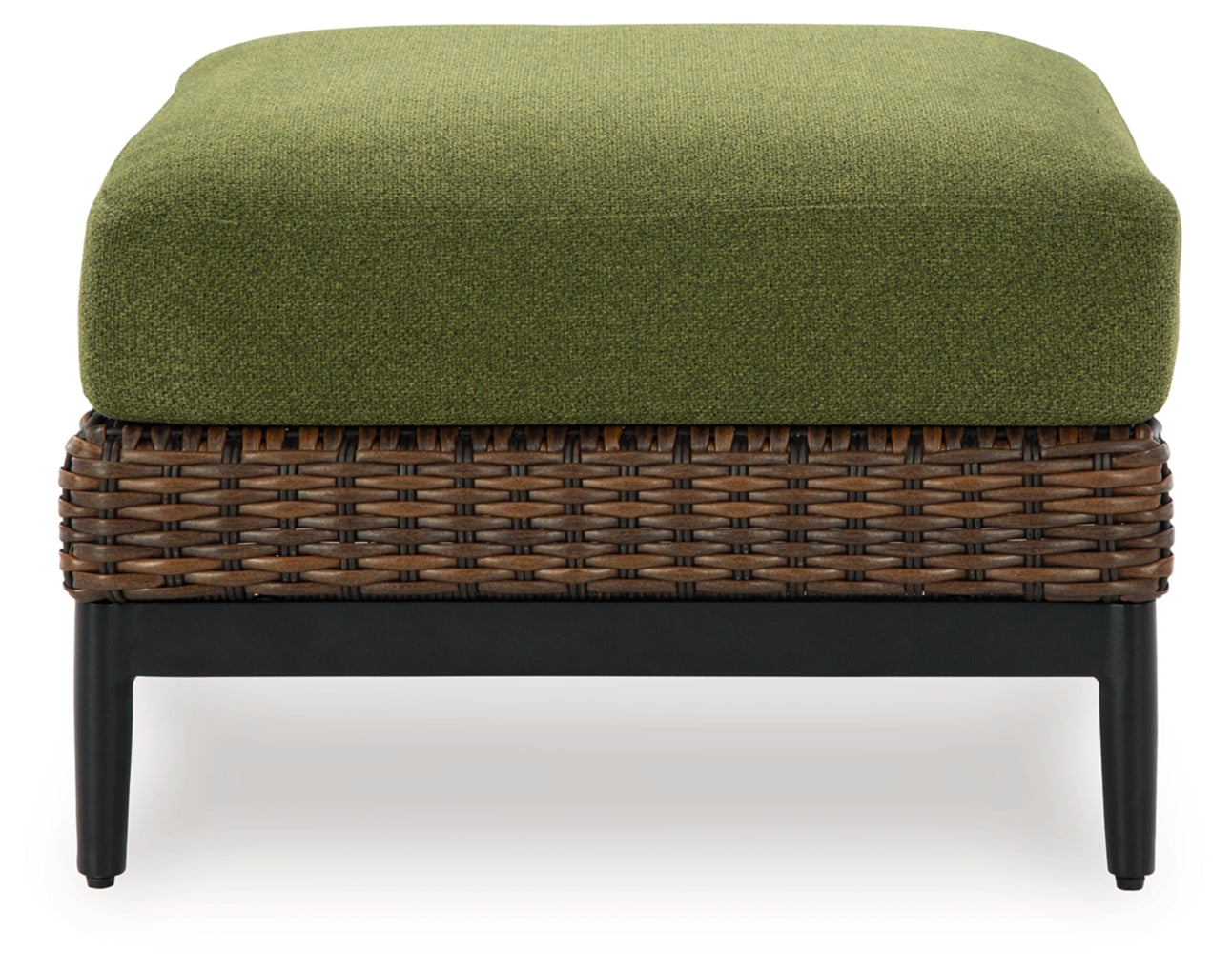 This outdoor ottoman recalls the aesthetics of nature to bring an inviting, high-style feel to your patio or lanai. Its Nuvella+ª performance fabric is made with enhanced UV resistance, so the chic green hue stays brighter for longer. Worried about the weather? Don't sweat itÑthe durable resin wicker withstands the elements from season to season.