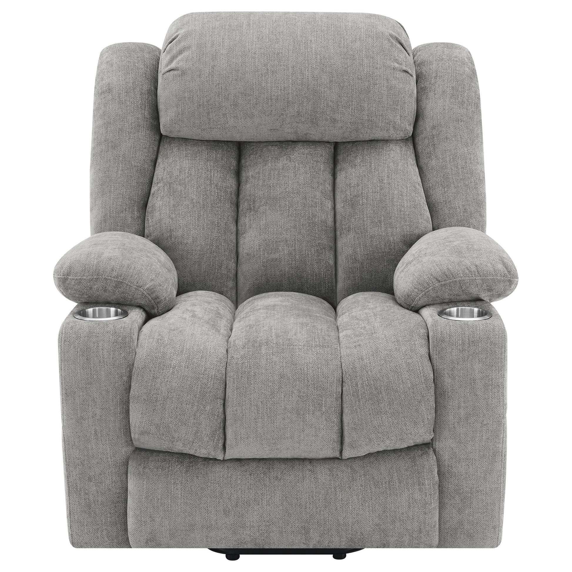 Disfrute de una comodidad y conveniencia excepcionales con un moderno sillón reclinable eléctrico que le permite relajarse y descansar, a la vez que le ayuda a ponerse de pie. Su aspecto mullido y acolchado resulta muy acogedor en salas de estar o estudios, mientras que su capitoné contorneado proporciona un soporte excepcional para todo el cuerpo. El sillón se maneja mediante un panel de control con botones sencillos y un puerto USB integrado para un fácil acceso. El panel de control se encuentra a la derecha del asiento y cuenta con un bolsillo suave, perfecto para guardar libros de lectura o un libro de pasatiempos. La suave tapicería, los brazos con acolchado y los dos portavasos realzan la acogedora apariencia de este encantador sillón reclinable.