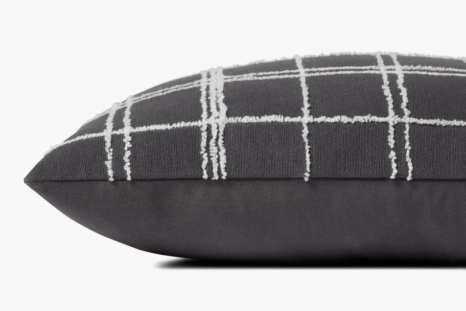 Sofisticada almohada de grafito y marfil de la India, bellamente bordada sobre algodón para una textura lujosa. Cuenta con un cierre de solapa oculto y una cremallera de bronce antiguo con el logotipo de Loloi, que le aporta un toque de elegancia. El tratamiento de filo le proporciona un acabado limpio y moderno, mientras que el reverso gris realza su versatilidad. (33 x 89 cm)