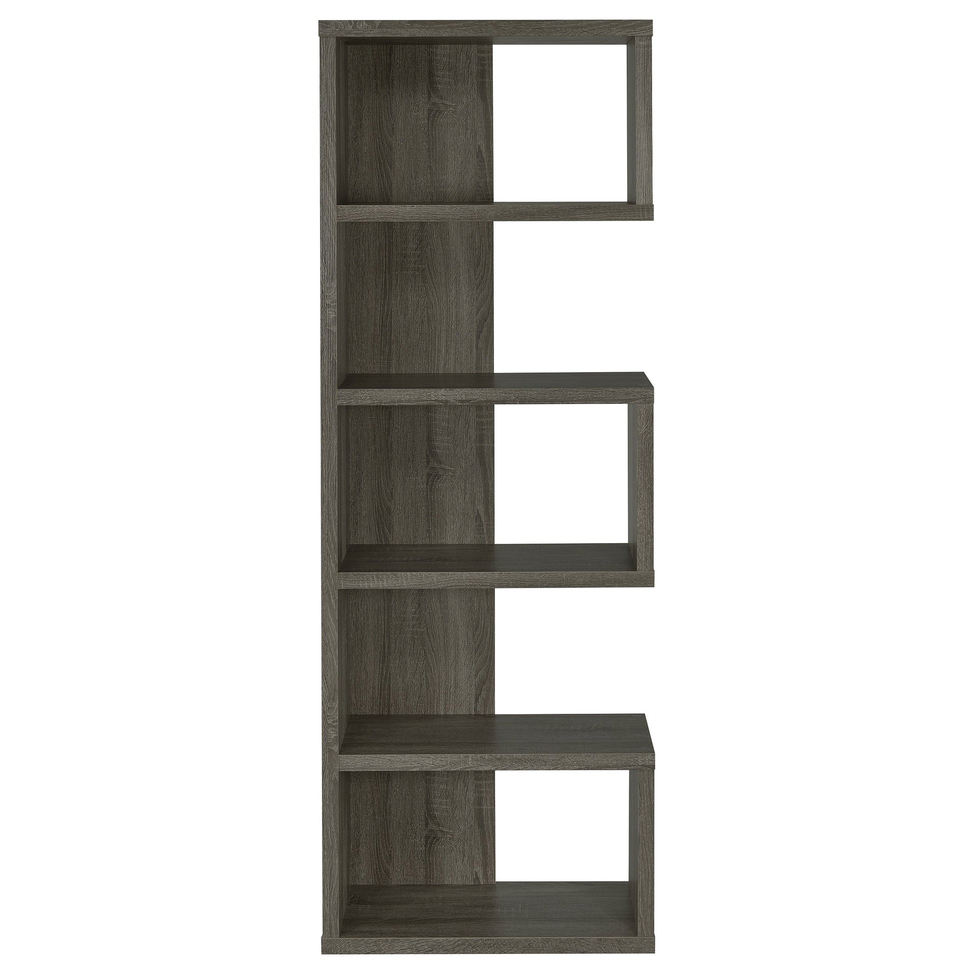 Un desequilibrio intencionado cuenta una historia. Diseñada con un perfil caprichoso, esta librería ilumina un espacio contemporáneo. Su atractiva disposición de cinco niveles crea espacio para libros y decoración. Con un acabado en un gris desgastado y fresco, ofrece versatilidad y un diseño impactante. Conviértala en el punto focal de una oficina en casa o una habitación informal.