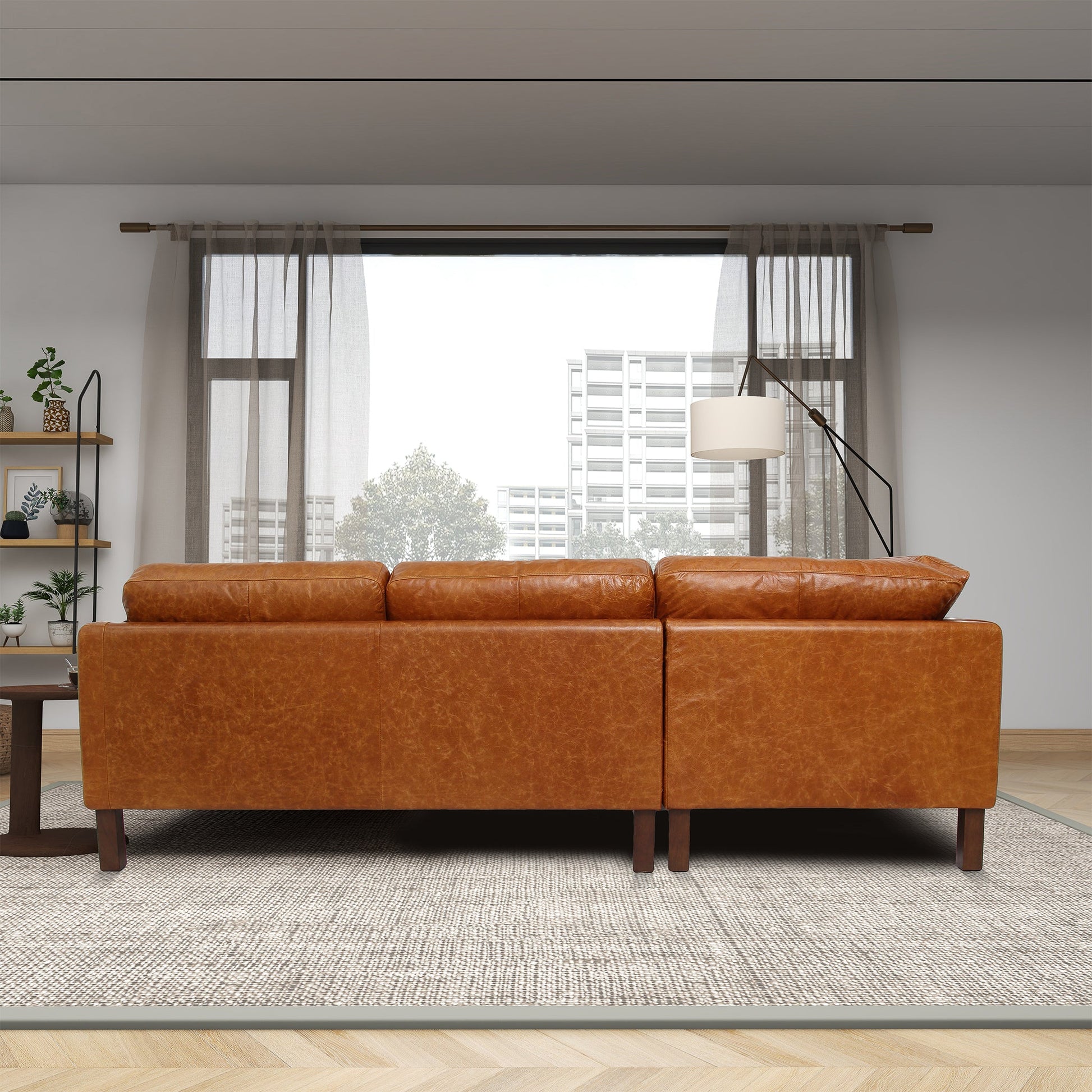 Diseñado para una conversación agradable, el sofá seccional de cuero Juno es la combinación ideal de sofisticación y elegancia. Su rico acabado en cera y aceite, y su tapizado 100% de cuero de búfalo teñido con anilina, realzan las variaciones naturales de color, creando un estilo clásico y distintivo. El asiento profundo y los resistentes cojines rellenos de espuma ofrecen la máxima comodidad tanto para sentarse como para dormir. Su diseño de patas altas facilita la limpieza. Este sofá es duradero y ecológico, ya que está fabricado con madera sostenible y cumple con las normativas CARB y TB117. Es un complemento fantástico para cualquier sala de estar gracias a su rápido y sencillo montaje.