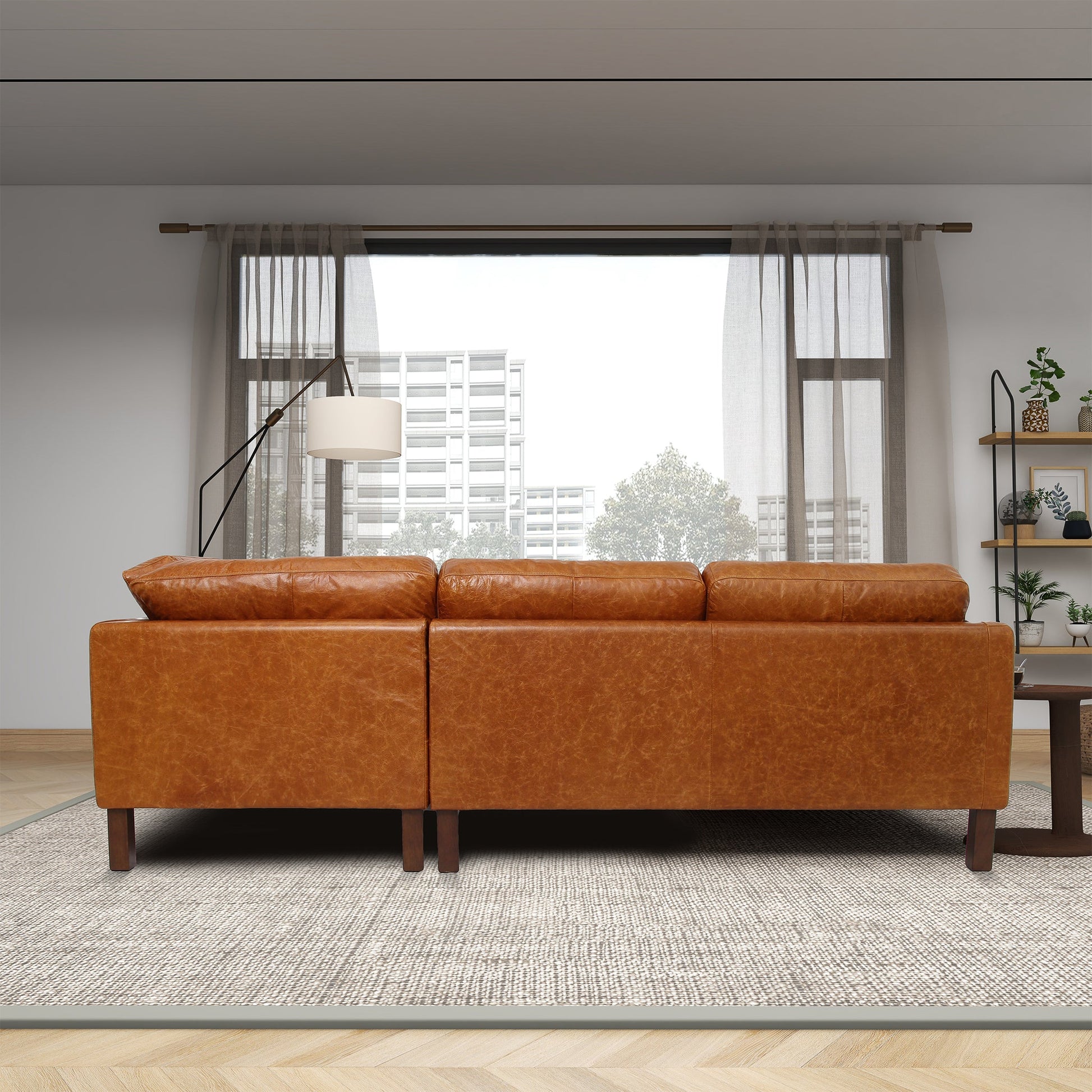 Diseñado para una conversación agradable, el sofá seccional de cuero Juno es la combinación ideal de sofisticación y elegancia. Su rico acabado en cera y aceite, y su tapizado 100% de cuero de búfalo teñido con anilina, realzan las variaciones naturales de color, creando un estilo clásico y distintivo. El asiento profundo y los resistentes cojines rellenos de espuma ofrecen la máxima comodidad tanto para sentarse como para dormir. Su diseño de patas altas facilita la limpieza. Este sofá es duradero y ecológico, ya que está fabricado con madera sostenible y cumple con las normativas CARB y TB117. Es un complemento fantástico para cualquier sala de estar gracias a su rápido y sencillo montaje.