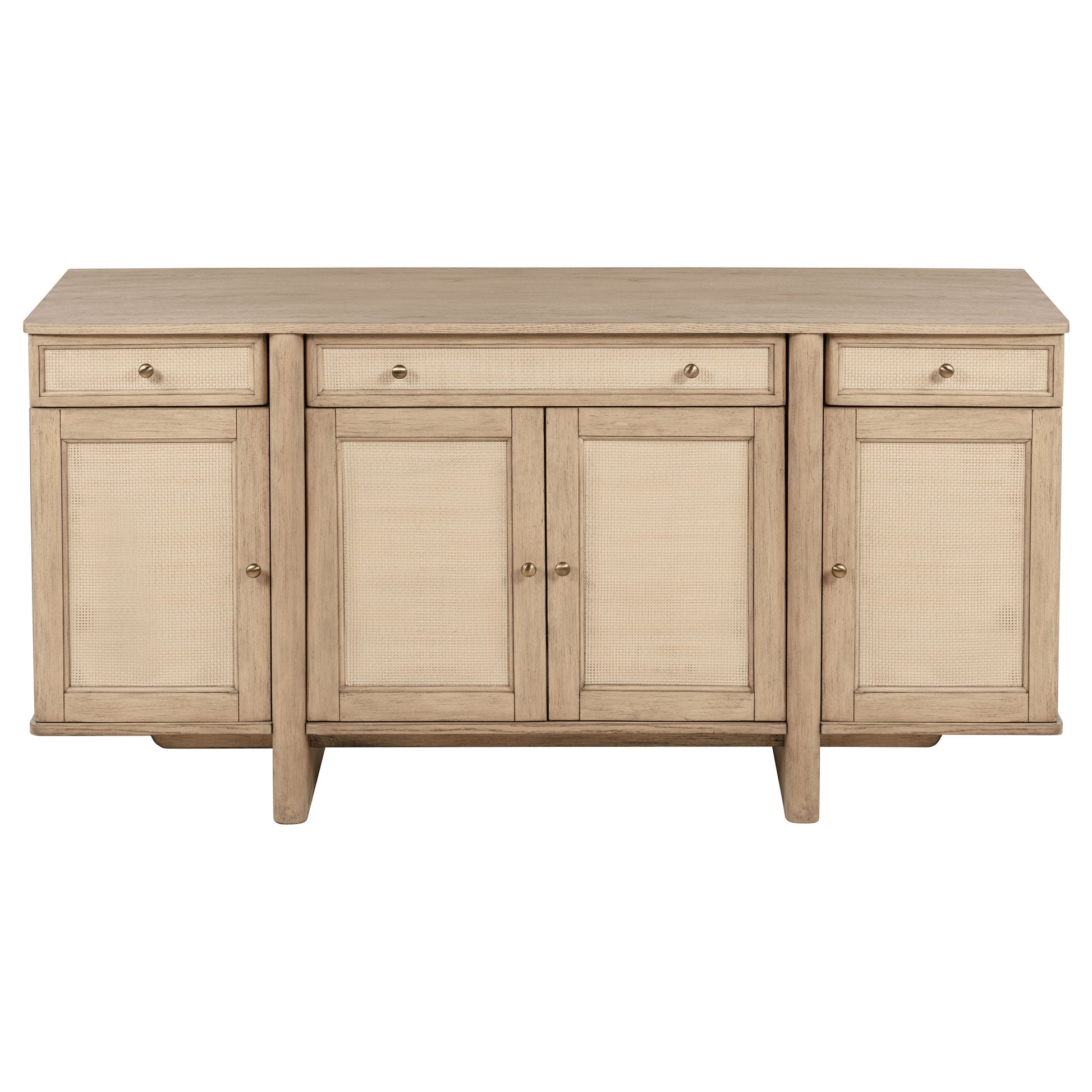 Añada belleza y funcionalidad a su comedor o sala de estar con este aparador de elegante factura. Con un cálido acabado en madera de roble beige, este aparador ofrece amplio espacio de almacenamiento con tres amplios cajones y tres compartimentos tras cuatro puertas, perfectos para organizar la vajilla, la ropa de cama y otros artículos esenciales. Los frentes de las puertas de caña tejida a mano añaden un toque de encanto artesanal, mientras que los estantes interiores ajustables ofrecen versatilidad para sus necesidades de almacenamiento. Los recortes traseros facilitan la gestión de cables, lo que lo hace ideal como centro de entretenimiento o aparador. Ya sea que busque realzar su comedor, sala de estar o recibidor, este aparador ofrece un estilo atemporal y una práctica funcionalidad.