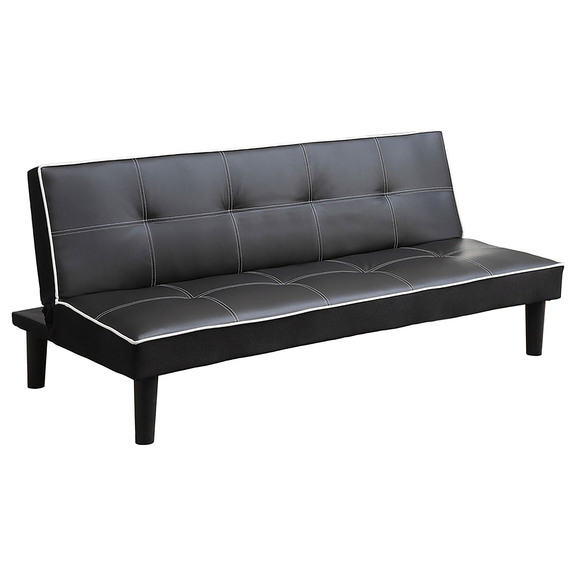 Añada una estructura elegante y versátil a cualquier sala de estar con este sofá cama negro. Con una silueta moderna, los cojines descansan sobre una resistente estructura de madera noble secada al horno. La tapicería de polipiel oscura contrasta con ribetes de tonos claros y capitoné cuadrado. Diseñado para la comodidad, este sofá cama se completa con una base de muelles sinuosos y espuma de alta densidad. Esta sofisticada pieza también está disponible en gris con ribetes negros y marrón con ribetes tostados.