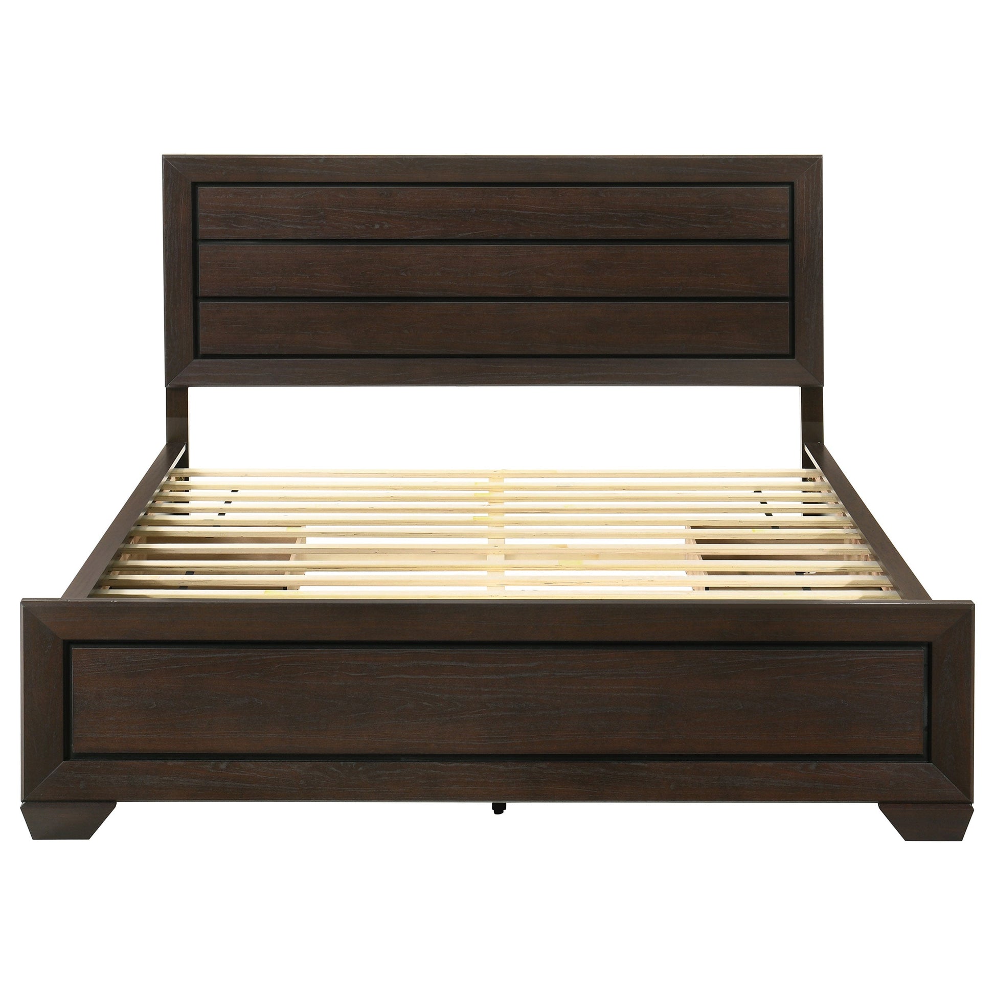 Un toque fresco y sofisticado aporta una estética elegante a la decoración de interiores. Pruebe esta excepcional cama en cualquier espacio de transición. Dramático y audaz, su acabado cacao oscuro presenta ranuras negras que contrastan. Elija conjuntos de lino que resalten su atractiva personalidad. Esta cama se convertirá en la pieza central perfecta de cualquier habitación.