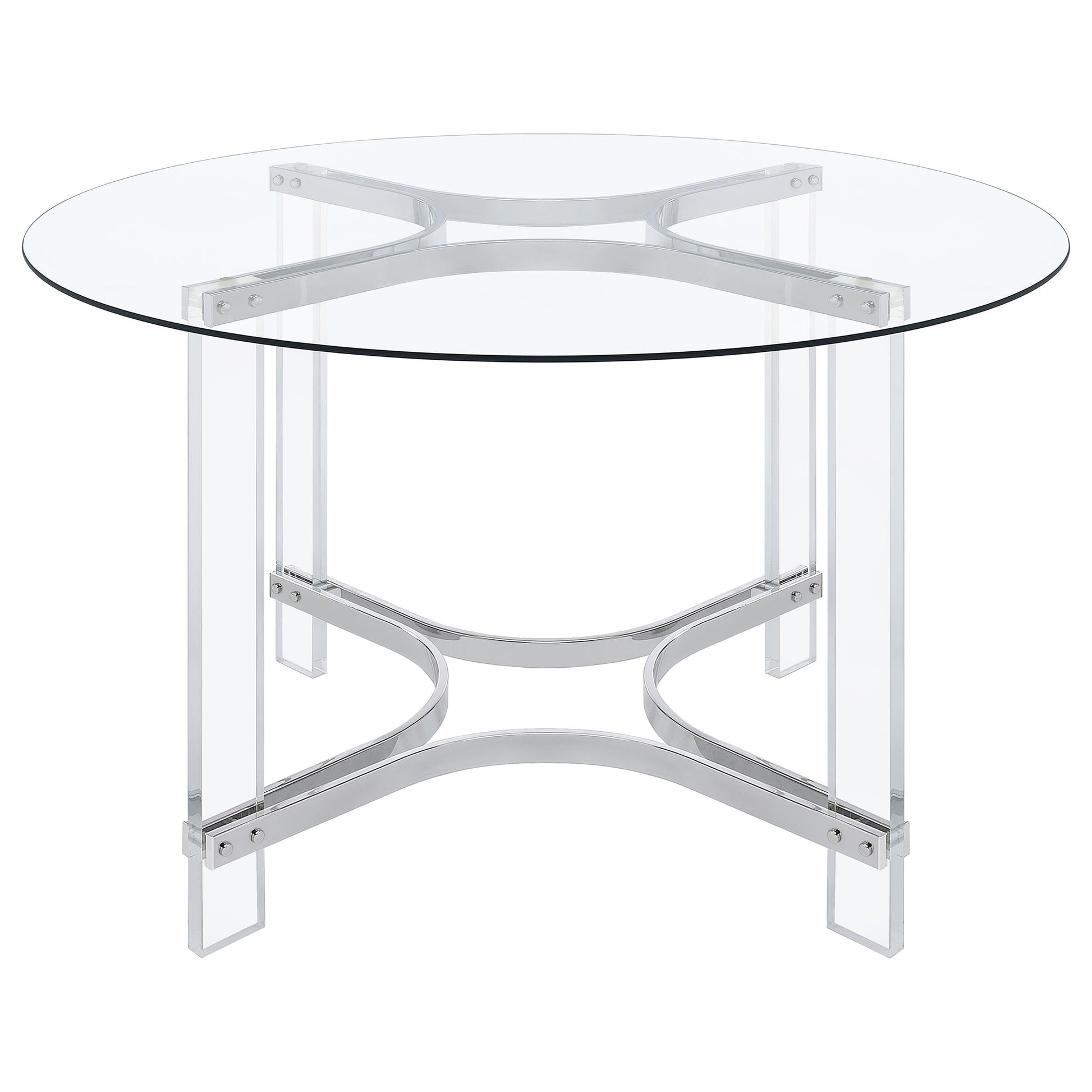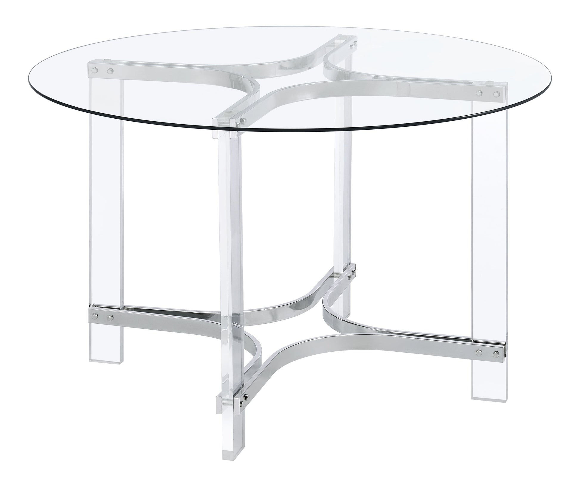 Mejore su experiencia gastronómica con este elegante y contemporáneo juego de comedor, que combina diseño moderno con una elegancia etérea. Este juego incluye una impresionante mesa redonda con tablero de vidrio y patas de acrílico transparente que crean un perfil elegante y escultural, complementado con brillantes detalles cromados que le dan un toque de sofisticación. Cuatro sillas auxiliares con asientos y respaldos de acrílico transparente completan el conjunto, aportando un toque minimalista y cómodo a su espacio. Las bases cromadas de las sillas, con diseño de trineo, brindan estabilidad y un contraste dinámico con las elegantes curvas del acrílico, convirtiendo este juego en una pieza central atractiva para cualquier comedor o desayunador moderno. Ideal para espacios reducidos, este juego combina estilo y funcionalidad, ofreciendo una sensación de amplitud y luminosidad que realza cualquier decoración.