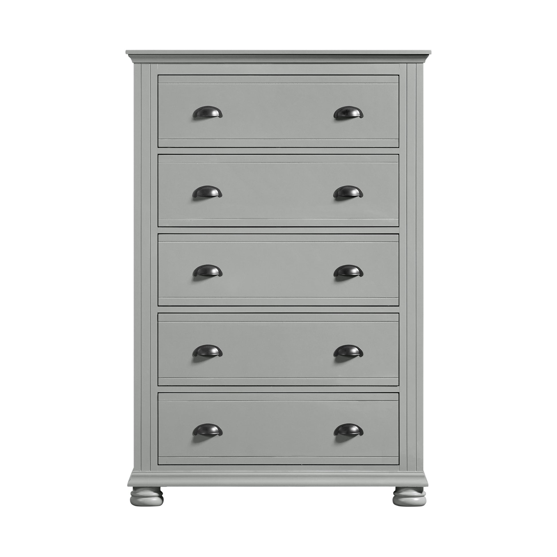 The Kona Chest is a stylish and functional addition to any bedroom. The top drawer is lined with felt to protect your belongings, and the dust-proofing bottom layer ensures that your items stay clean. It features black cup pull hardware and Kenlin drawer guides, bun feet for stability, and an included anti-tipping kit for safety, making the Kona Dresser both practical and chic.