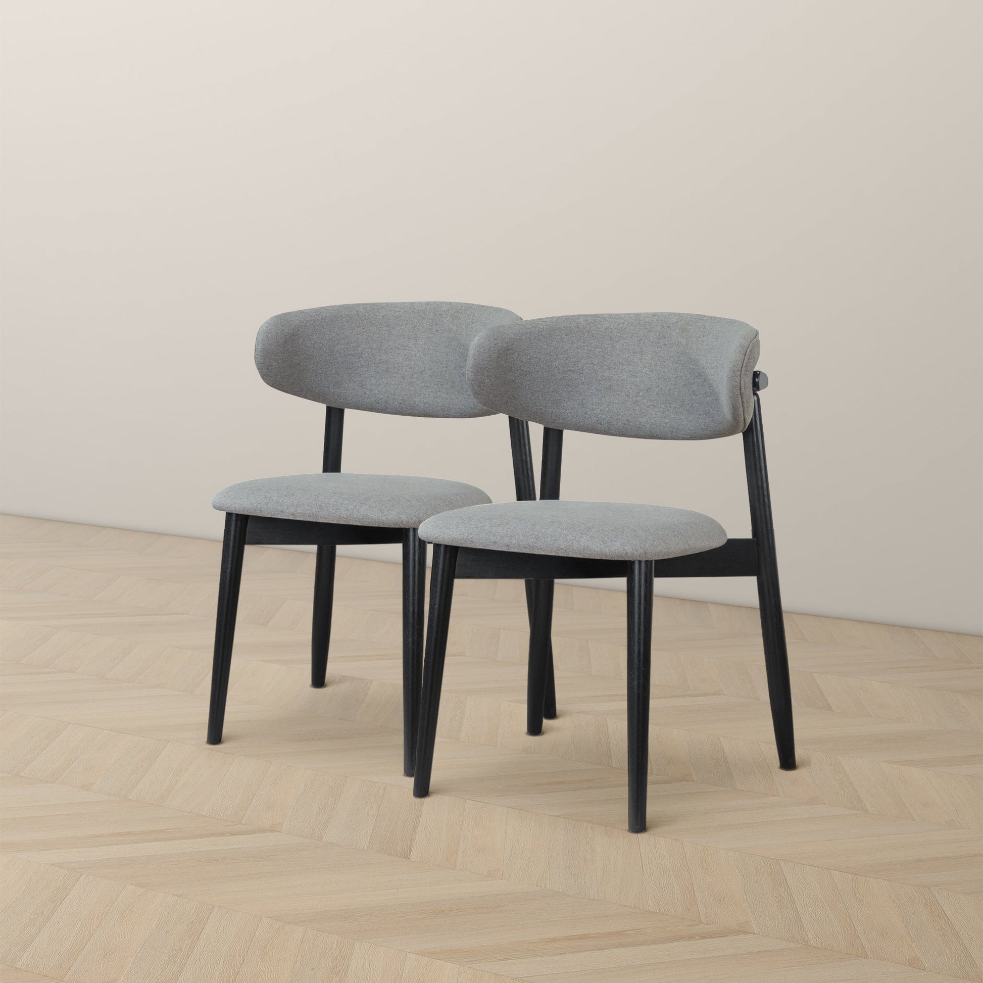Juego de 2 sillas de comedor de madera maciza, tapizadas en tela de textura suave en gris, base de madera de caucho color negro, diseño moderno de mediados de siglo.