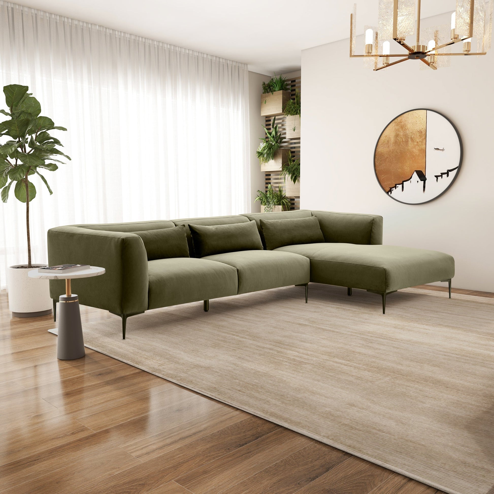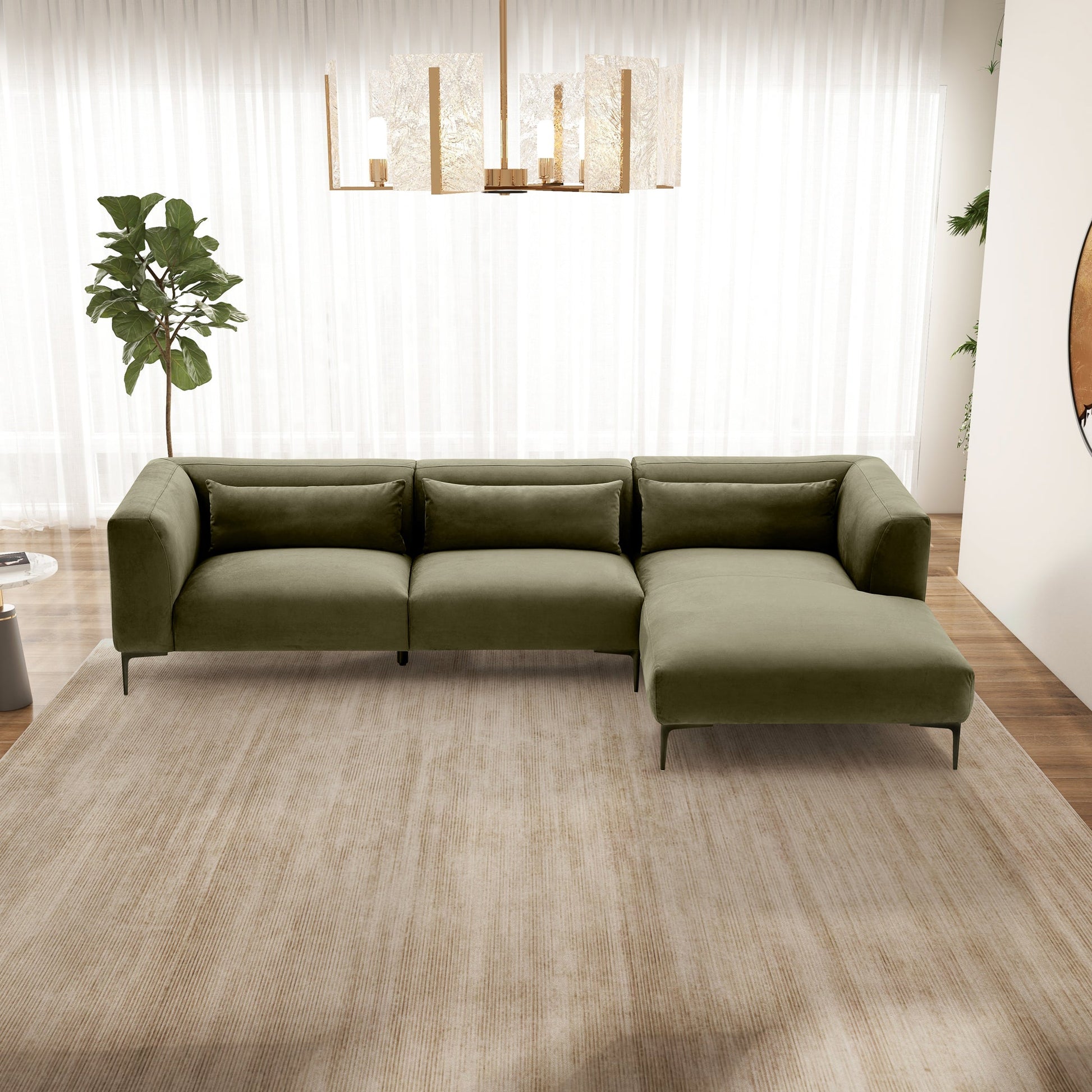 El sofá seccional en forma de L es el complemento perfecto para cualquier sala, apartamento, loft o condominio. Con su diseño moderno de mediados de siglo, este elegante y chic mueble de sala añade un toque de elegancia a cualquier espacio. Fabricado con materiales de alta calidad, es apto para mascotas y está diseñado para resistir el uso diario. La tapicería de terciopelo le da un aspecto de diseño a un precio asequible. Ya sea para recibir invitados en la sala o relajarse en la sala de juegos, este sofá seccional es la opción perfecta para la comodidad y el estilo. Debido a las fotos de estudio, el producto que reciba podría ser un tono más oscuro o más claro de lo esperado.