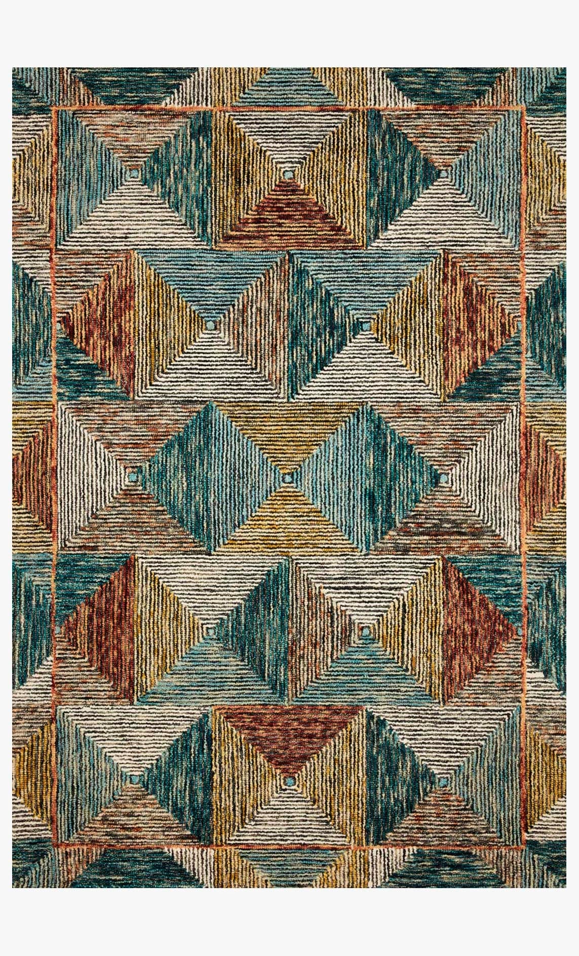 Elaborada con lana por artesanos de la India, la colección Spectrum presenta colores y texturas vibrantes. Divertida y ecléctica, esta colección es un punto focal geométrico para cualquier espacio.