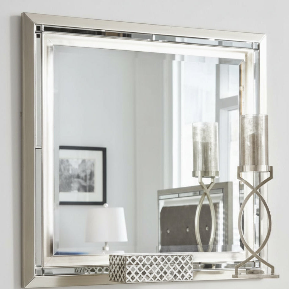 • Tiradores de barra de metal con acabado en tono níquel satinado
