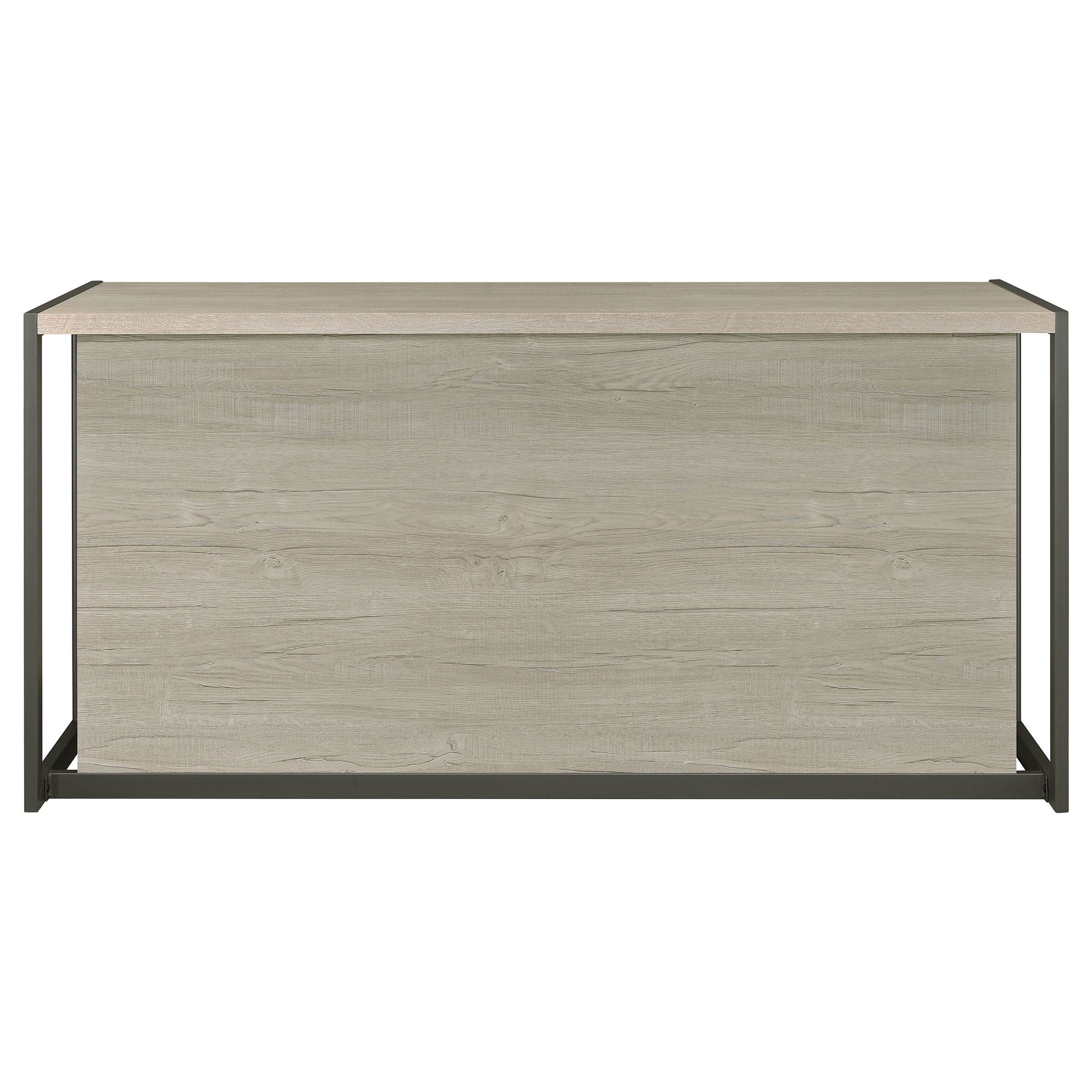 Realza tu oficina en casa contemporánea y organiza tus suministros con este espacioso escritorio de oficina contemporáneo, con un acabado gris blanqueado claro y brillante que mantiene una apariencia limpia. Cuatro cajones, incluyendo un archivador profundo, te permiten organizar documentos importantes, con tiradores con acabado metalizado que combinan con la base tipo trineo con acabado gris.