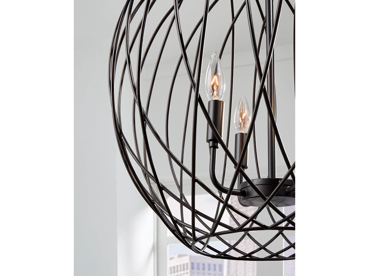 Extraordinariamente versátil, esta lámpara colgante de jaula abierta complementa fácilmente cualquier decoración, desde la contemporánea hasta la clásica. Su estructura metálica se embellece con un acabado en tono bronce oscuro que le aporta una sofisticación seductora. Tan elegante en la cocina o el comedor, resulta igualmente atractiva en cualquier lugar, desde la entrada hasta el dormitorio.