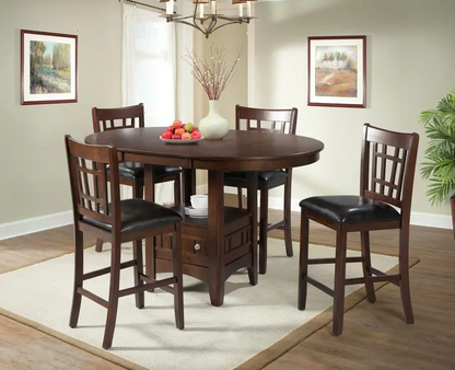 ¡La silla auxiliar Max Pub es la silla de pub ideal! Este juego viene con asientos acolchados de espuma, mientras que el respaldo de celosía mantiene el juego elegante. Utilícelos como taburetes de bar para acercarlos a la encimera o complete el estilo con la mesa de comedor Max Pub a juego.