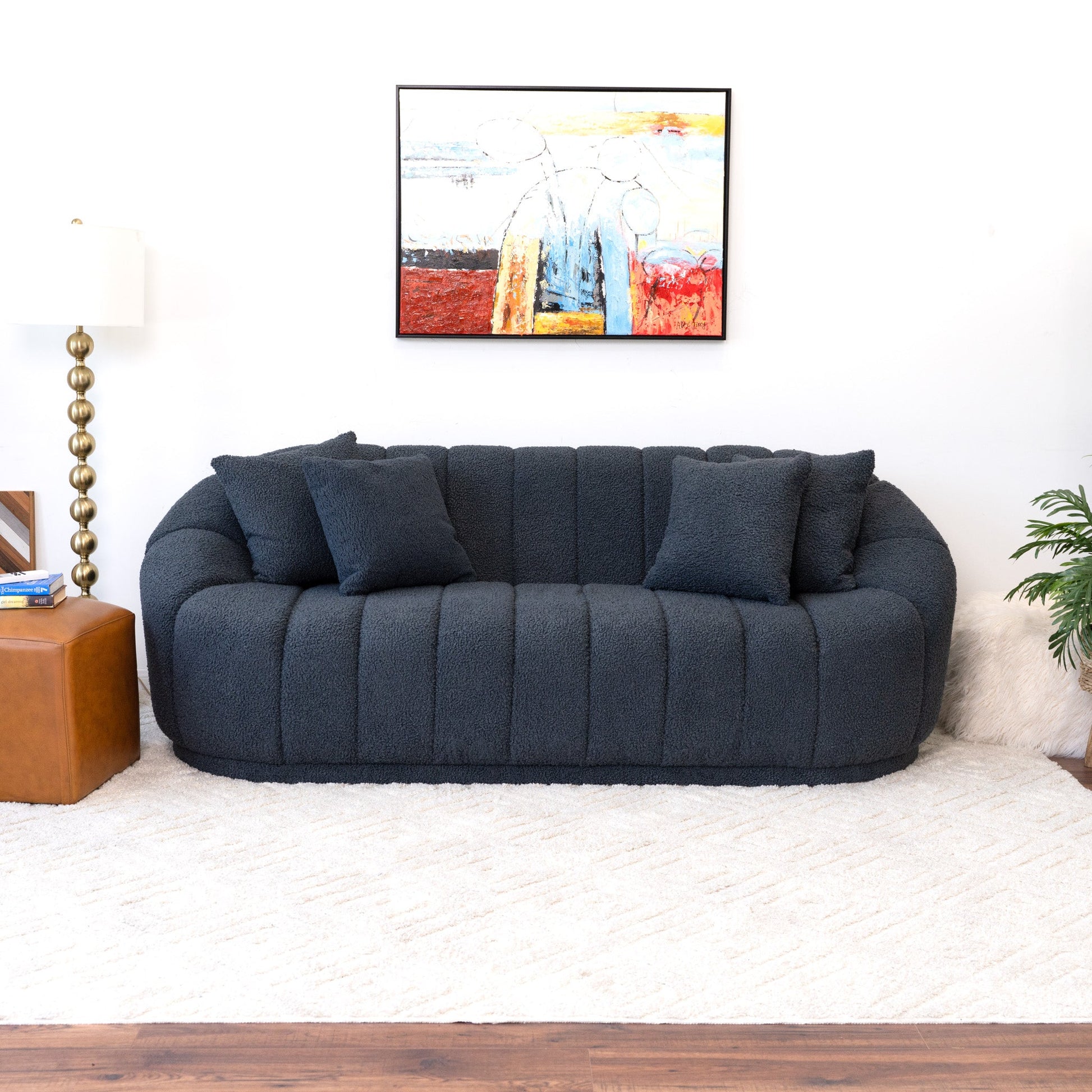 El sofá orgánico de bouclé de estilo Japandi de mediados de siglo es una impresionante pieza de mobiliario que combina a la perfección la elegancia del diseño de mediados de siglo con la sencillez y la serenidad de la estética japonesa. Fabricado con meticulosa atención al detalle, este sofá irradia sofisticación y armonía. Presenta una silueta elegante y minimalista, característica del diseño moderno de mediados de siglo. Sus líneas limpias y suaves curvas crean un atractivo atemporal que complementa a la perfección cualquier decoración de interiores. La estructura está fabricada con materiales orgánicos de alta calidad, lo que garantiza su durabilidad y sostenibilidad. Una de las características más destacadas de este sofá es su lujoso tapizado de bouclé. La tela de bouclé aporta un toque de textura y profundidad al diseño general, creando un ambiente acogedor y atractivo.