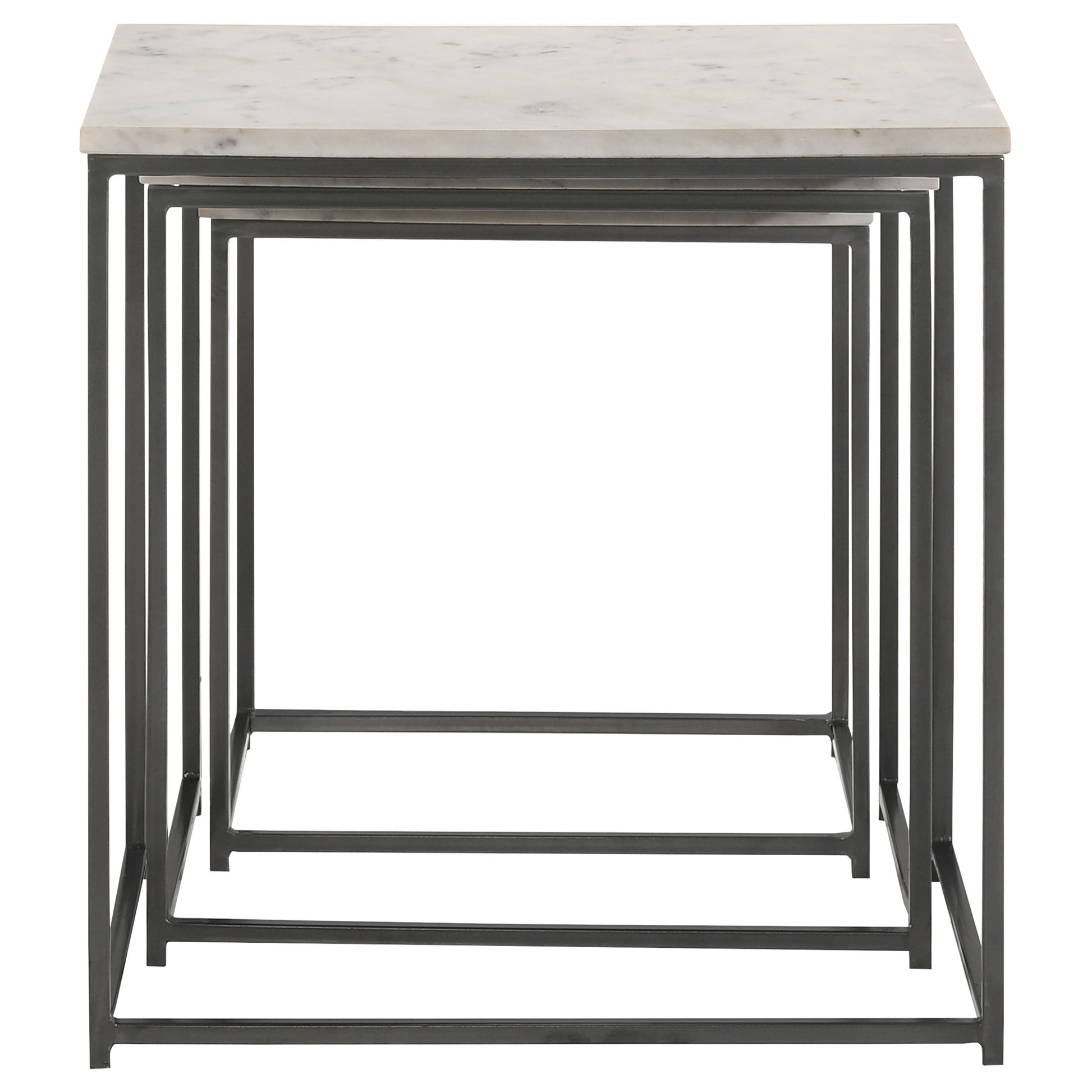 Este juego de mesas nido cuenta con tableros de mármol blanco auténtico y una elegante estructura metálica con acabado en polvo gris plomo. Ideales para espacios reducidos, las mesas se apilan fácilmente para ahorrar espacio, ofreciendo flexibilidad cuando se necesita más superficie. Con patas finas y un diseño abierto tipo caja, estas mesas auxiliares ofrecen un toque moderno. Ideales para crear una composición sofisticada y funcional, el conjunto es igualmente práctico tanto por separado como en trío.