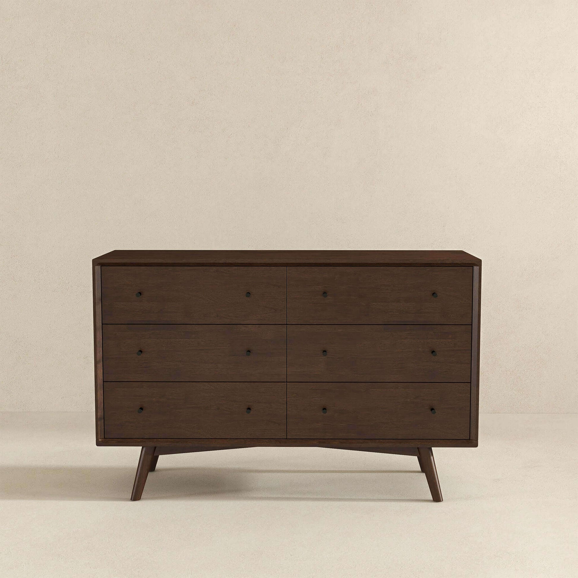 Completa la decoración de tu dormitorio urbano con este elegante conjunto de seis cajones de estilo mid-century modern. No solo es un complemento esencial para cualquier dormitorio, sino también una solución de almacenamiento funcional. Esta moderna cómoda ofrece seis amplios cajones que se abren y cierran con suavidad, con deslizadores que sirven como organizadores. Sus amplios cajones son perfectos para guardar ropa voluminosa y ayudarte a ordenar tu dormitorio. Su elegante frente y su construcción de madera maciza hacen de este organizador una pieza versátil que también puede usarse como consola para tus aparatos electrónicos, libros y lámpara. Realza tu dormitorio con este moderno organizador de ropa. Esta cómoda ofrece amplio espacio de almacenamiento en el dormitorio principal, la habitación de invitados, la habitación de los niños, la entrada, el comedor, la sala de juegos y cualquier espacio de estar.