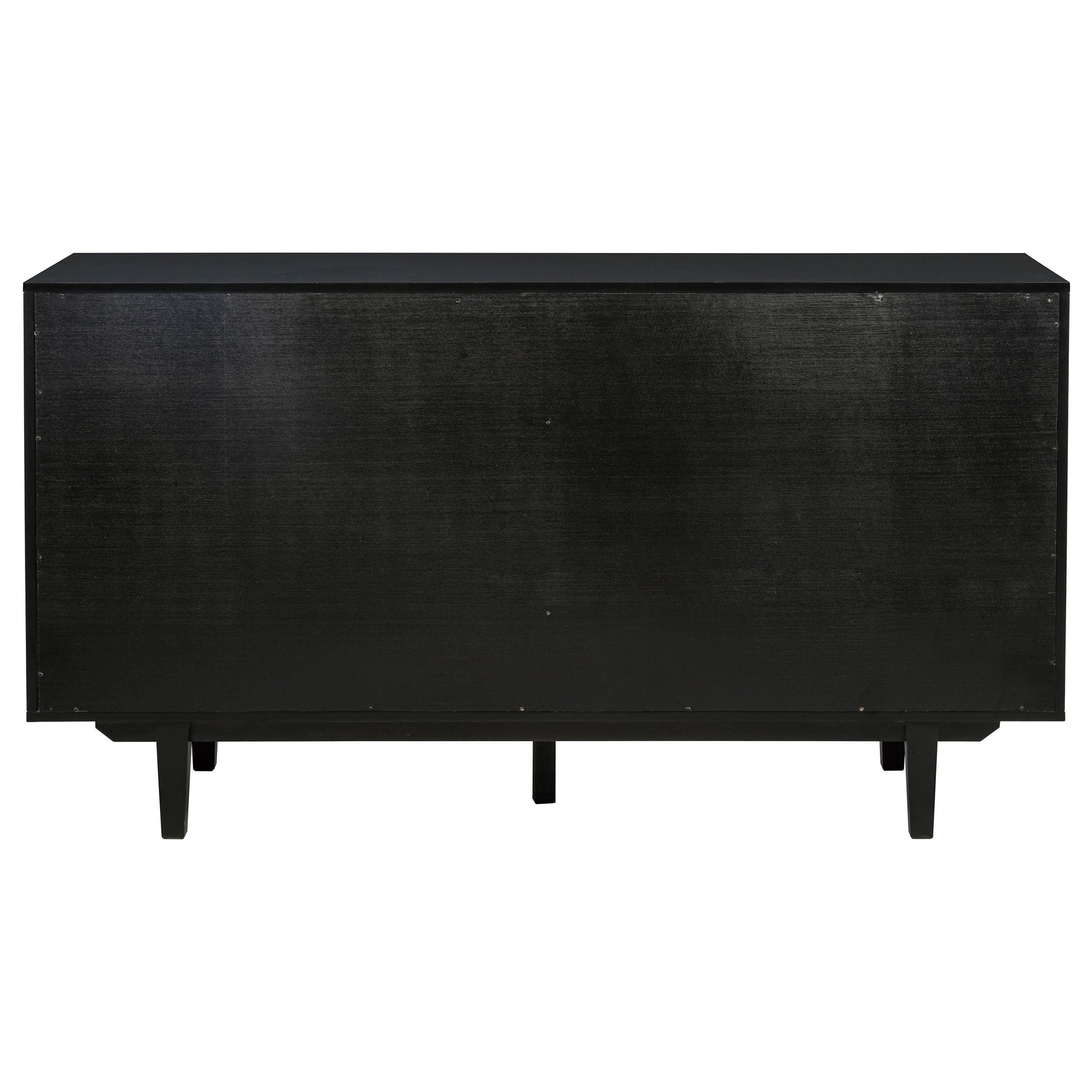 Este versátil aparador combina elegancia moderna con un diseño funcional. Cuenta con puertas de gabinete con paneles de vidrio templado que revelan estantes ajustables, perfectos para exhibir u organizar artículos. Dos cajones de deslizamiento suave y forrados en fieltro ofrecen almacenamiento oculto para artículos esenciales delicados. Fabricado en caoba resistente, madera de ingeniería y chapa de fresno, esta pieza cuenta con robustas patas cónicas que garantizan estabilidad y estilo duraderos. Ideal para el comedor, la sala de estar o cualquier espacio de almacenamiento multiusos.