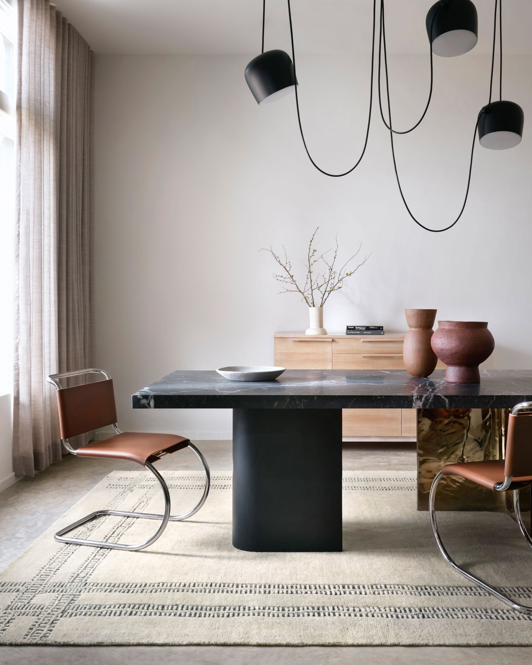 Made in collaboration with Carrier and Company x Loloi, the Milton Collection uses a banding detail to express the rich and plush pile. The addition of jute to the wool and cotton rugs creates a luxurious density that can be both seen and felt. As a simple border detail, a graphic plaid, or an over-scaled diamond that hints of Moroccan style, the collection offers different levels of formality. Saturated color fields are unexpectedly modern.