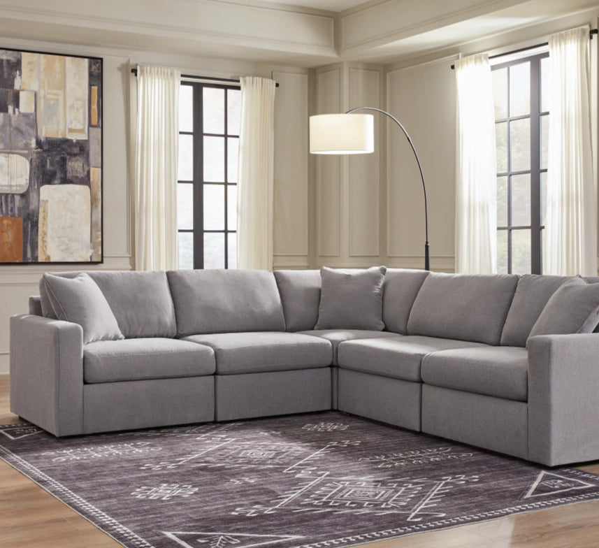 - Incluye 5 piezas modulares: silla de esquina con brazo izquierdo, 2 sillas sin brazos, cuña y silla de esquina con brazo derecho.