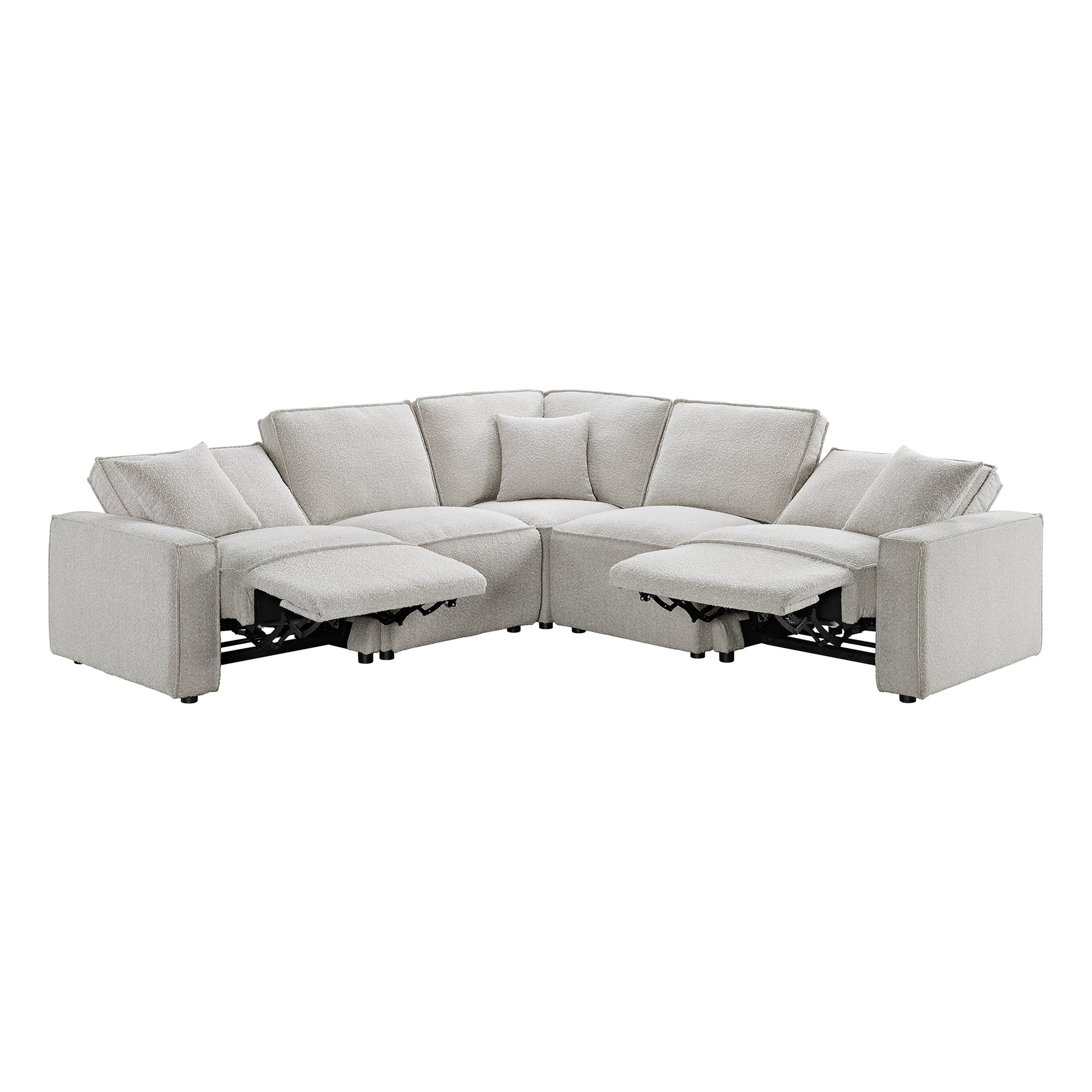 The Normandy 5 Piece Motion Sectional effortlessly hoists your living area with its modern design and cozy essence. Set in a light, neutral tone, this sectional complements a variety of dcor styles and color palettes alike. The soft upholstery covering amply cushioned pillows paired with this pieceÕs motion reclining functionality epitomize relaxation, while the welt edges incorporated throughout add a decorative touch. For those seeking to create a practical area of leisure, the Normandy 5 Piece Motion Sectional is the clear choice.