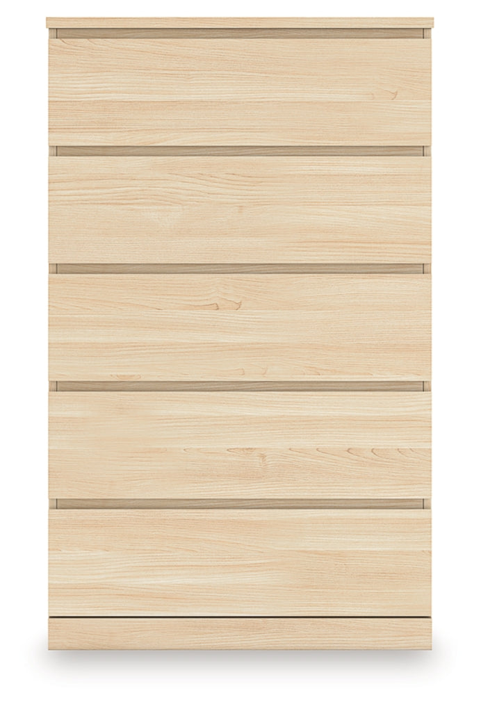 Create the modern bedroom of your dreams. This chest of drawers offers a minimal design with maximum style, combining ultra-clean lines and a relaxed natural finish with a hardware-less aesthetic. Spacious drawers with ball-bearing glides make putting things away a snap.