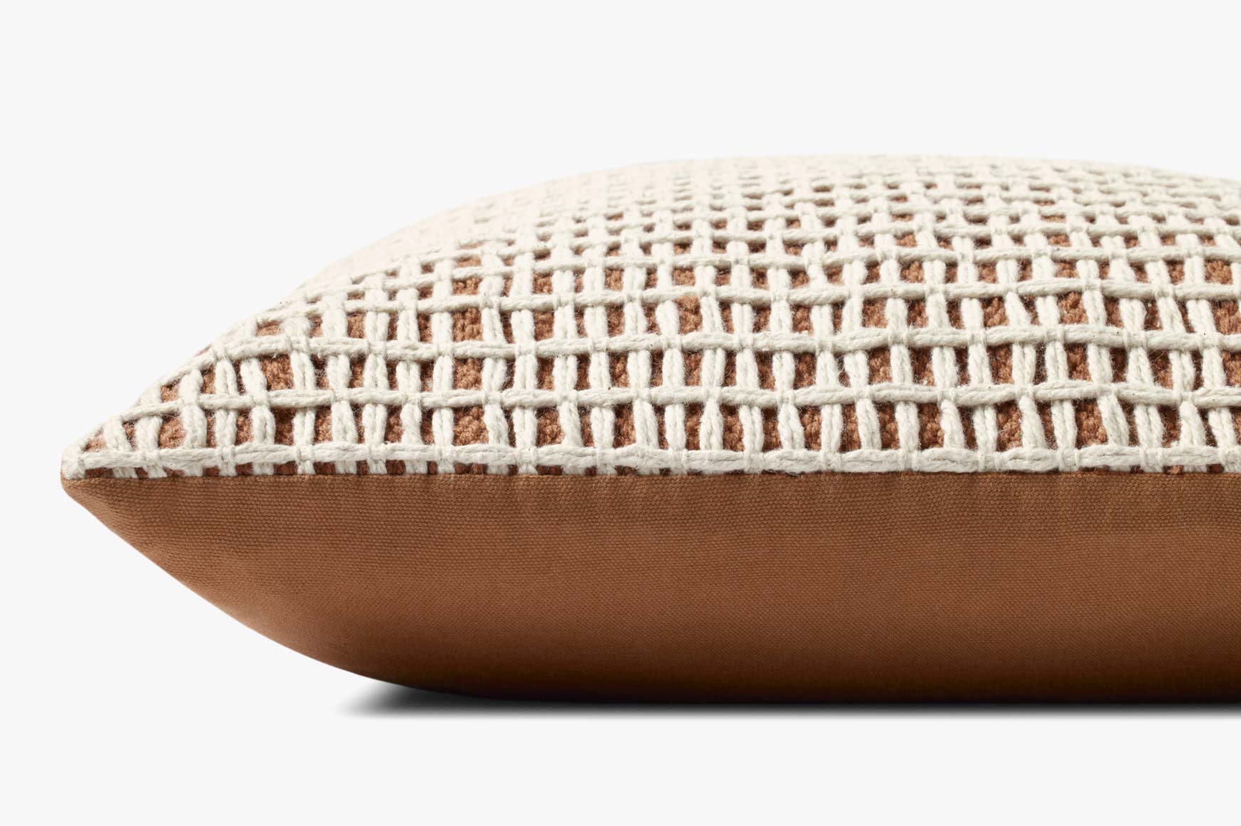 A subtly textured ivory grid covers this modern green throw pillow. The pillow is made of cotton and polyester and measures 18” x 18”, a standard size to style in living rooms and bedrooms.