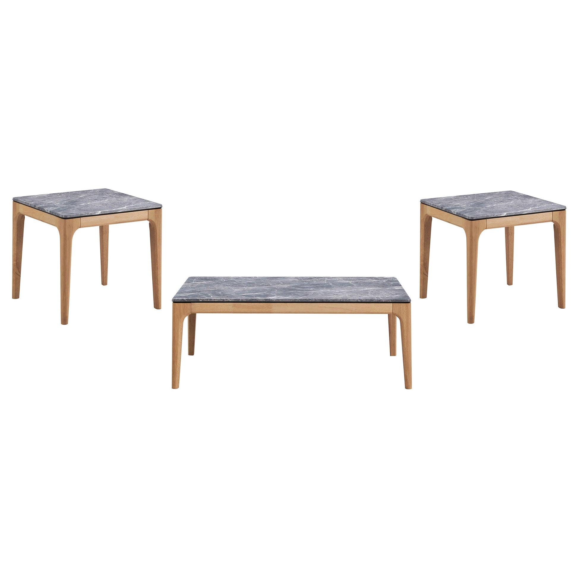 Juego de mesa de centro con tapas laminadas de alta presión en acabado imitación mármol gris para un estilo elegante.