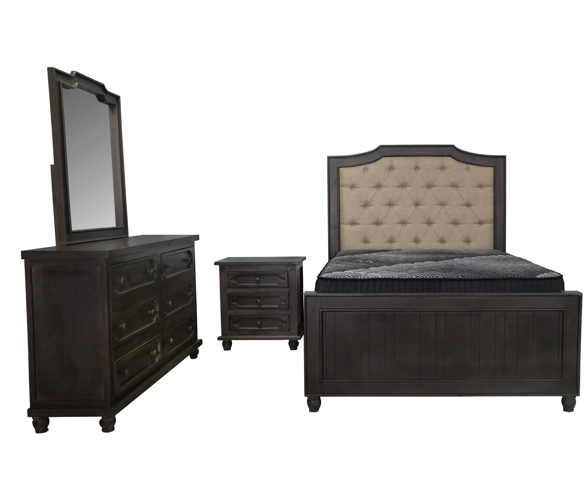 Transforma tu dormitorio con el juego de recámara principal Puebla, donde el encanto rústico se fusiona con la elegancia refinada. El juego cuenta con una lujosa cabecera tapizada que aporta un toque acogedor, complementada con un distintivo acabado con efecto madera húmeda que imita la madera desgastada para una atmósfera serena y natural. Incluye una cómoda espaciosa, un espejo con un elegante marco, una elegante mesita de noche con un práctico cajón y una cómoda alta y elegante para mayor espacio de almacenamiento. Fabricado con madera de alta calidad, el juego de recámara principal Puebla ofrece durabilidad y versatilidad, realzando a la perfección cualquier estilo de decoración.