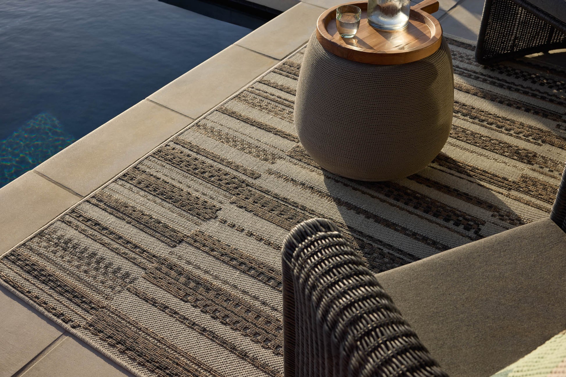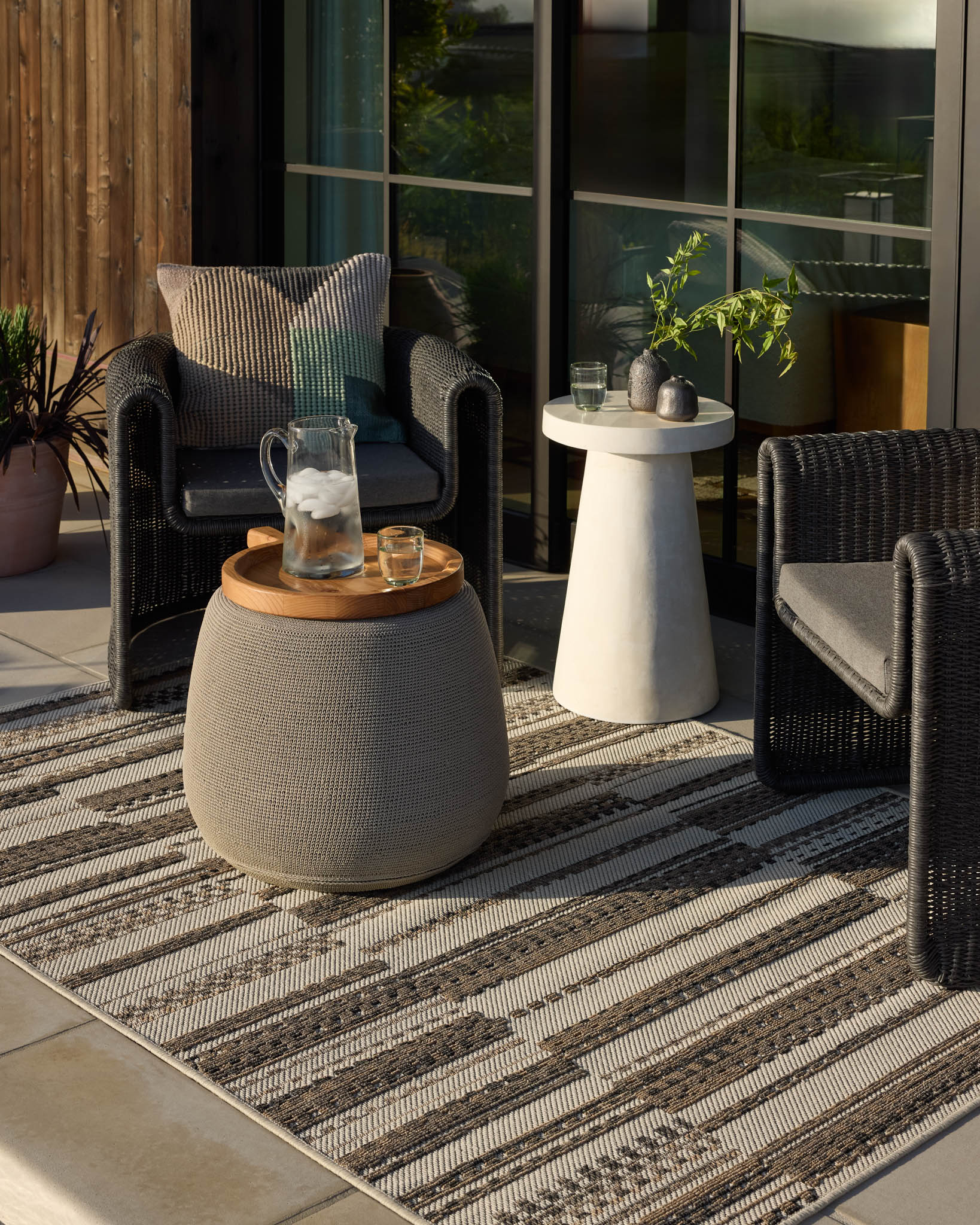 Power-loomed of 100% polypropylene pile in Egypt, the Rainier Collection features neutral hues and contemporary patterns. Rainier is an indoor/outdoor collection, specially treated to withstand rain, sunshine, and other outdoor elements.